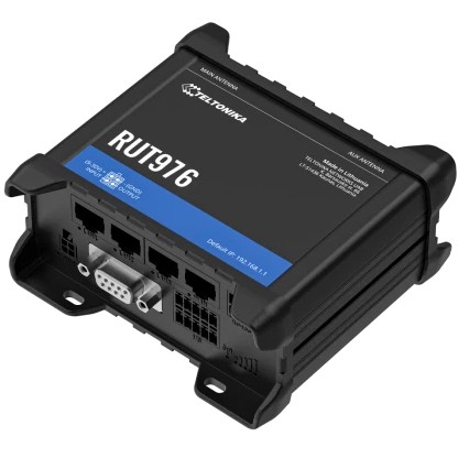 Teltonika RUT976. Gerätetyp: Router für Mobilfunknetz, Produktfarbe: Schwarz, Montage: DIN-Schienen-/Wandmontage. Schnittstellentyp Ethernet-LAN: Gigabit Ethernet, Unterstützte Netzwerkprotokolle: TCP, UDP, IPv4, IPv6, ICMP, NTP, DNS, HTTP, HTTPS, SFTP, FTP, SMTP, SSL v3, TLS, ARP, VRRP, PPP,.... WLAN-Standards: 802.11b, 802.11g, Wi-Fi 4 (802.11n). Datennetzwerk: 4G, 5G, 4G-Standards: LTE, 5G-Standard: Sub6 SA. Kompatible Speicherkarten: MicroSD (TransFlash), Max. Speicherkartengröße: 2 TB
