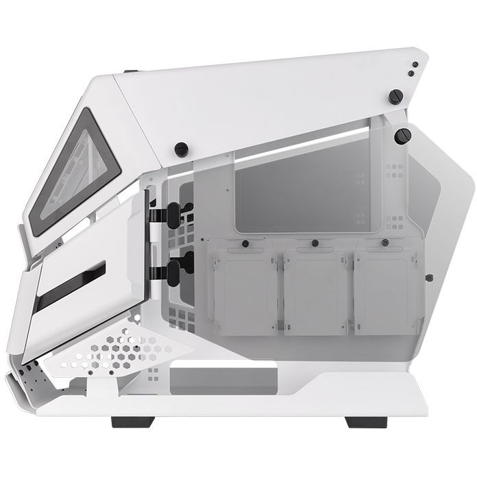 Thermaltake AH T200 Snow. Formfaktor: Micro Tower, Typ: PC, Produktfarbe: Weiß. Platzierung der Stromversorgung: Boden, Unterstützte Stromversorgungs-Formfaktoren: PS2. Durchmesser unterstützte Vorderseitenlüfter: 120,140 mm, Unterstützte Lüfterdurchmesser (oben): 120,140 mm, Unterstützte Radiatorgrößen vorne: 120,140,240,280 mm. Unterstützte Hard-Disk Drive Größen: 2.5,3.5". Breite: 282 mm, Tiefe: 551,5 mm, Höhe: 444,2 mm