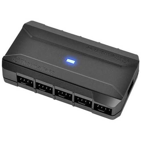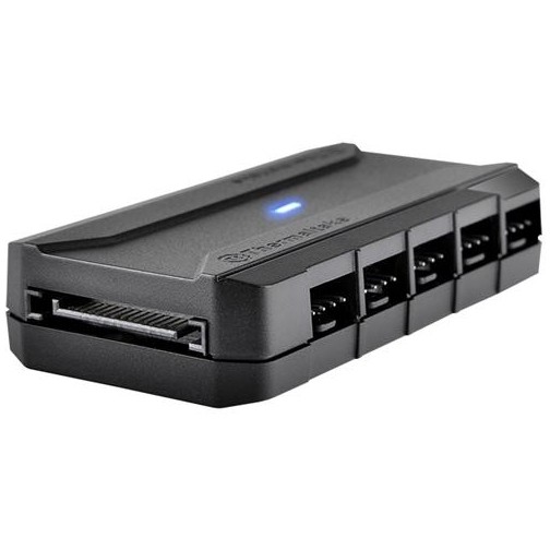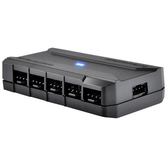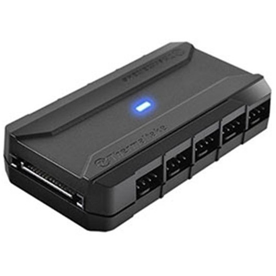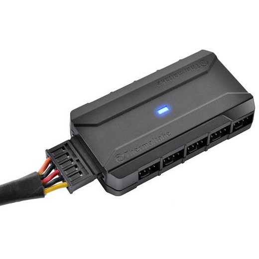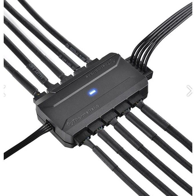 Der Commander FP von Thermaltake ist ein PWM Lüfterhub und ist im Stande bis zu 10 unabhängige PWM Lüfter mit Strom zu versorgen. So ist es möglich das Gehäuse mit Lüftern vollzubauen und gleichzeitig eine gute Kabelordnung zu erhalten. Mit dem blauen LED Anzeigelämpchen, den vielfältigen Möglichkeiten zum Kabelmanagement, dem einfachen Einbau und dem schlichten Design, stellt das Commander FP sicher, dass das Gehäuse innen so gut wie außen aussieht.