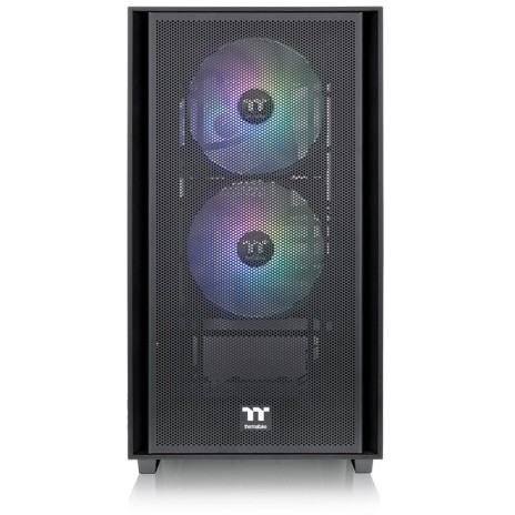Thermaltake Versa H16 TG ARGB. Formfaktor: Micro Tower, Typ: PC, Produktfarbe: Schwarz. Platzierung der Stromversorgung: Boden, Unterstützte Stromversorgungs-Formfaktoren: PS2. Installierte Lüfter (Vorderseite): 2x 120 mm, Durchmesser unterstützte Vorderseitenlüfter: 120,140 mm, Installierte Lüfter hinten: 1x 120 mm. Unterstützte Hard-Disk Drive Größen: 3.5", SSD-Formfaktor: 2.5". Breite: 216 mm, Tiefe: 378 mm, Höhe: 404 mm