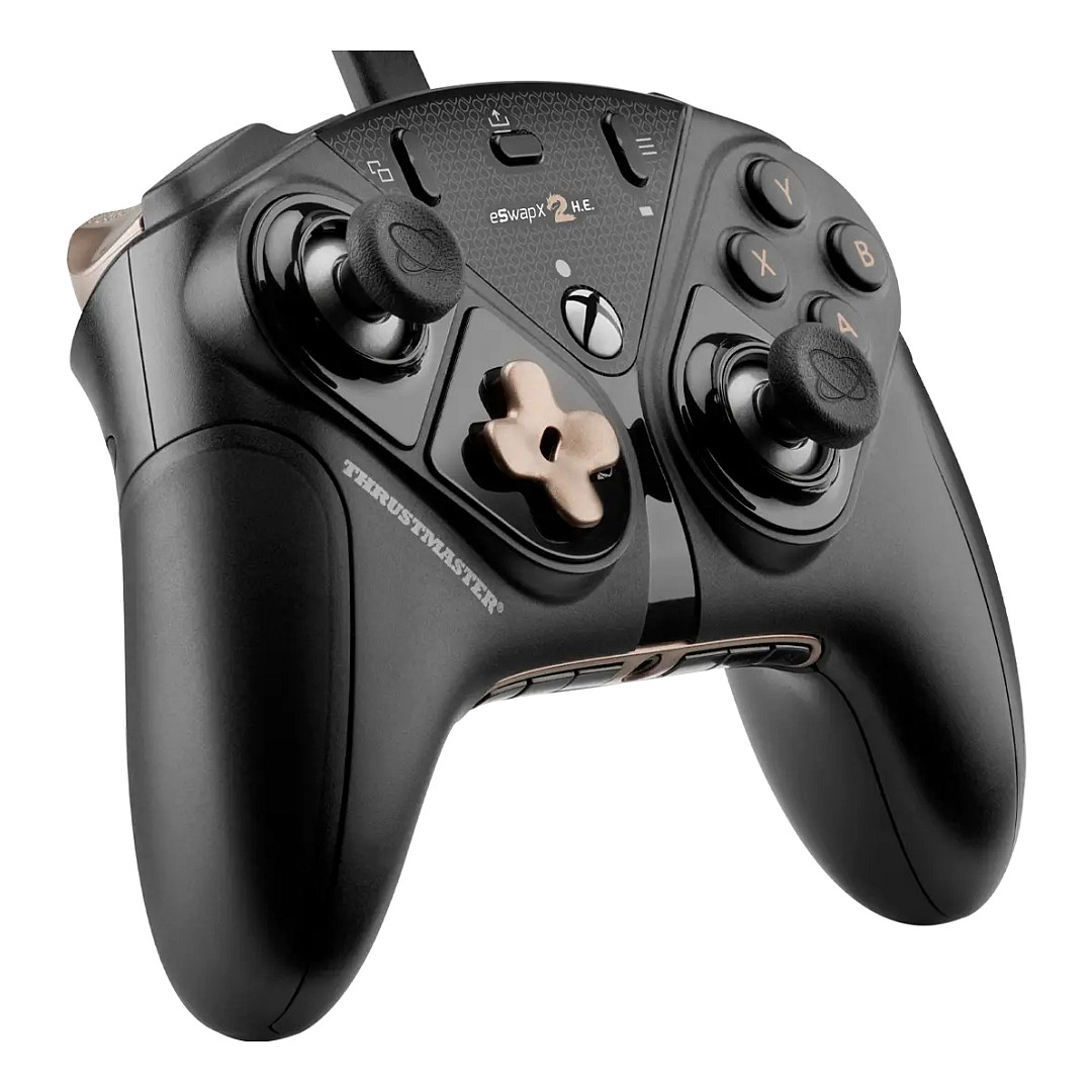 Thrustmaster ESWAP X2 H.E. Gerätetyp: Gamepad, Gamingplattformen unterstützt: PC, Xbox One, Xbox Series S, Xbox Series X, Gaming-Control Funktionsknöpfe: Menü-Taste, Schaltfläche Teilen, View button. Übertragungstechnik: Kabelgebunden, Geräteschnittstelle: USB, USB-Stecker: USB Typ-C. Produktfarbe: Schwarz. Energiequelle: Kabel. Breite: 160 mm, Tiefe: 120 mm, Höhe: 60 mm