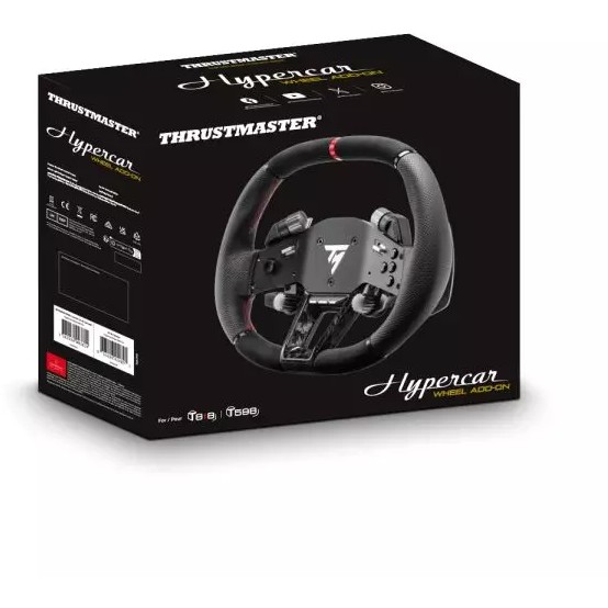 Thrustmaster Hypercar Wheel Add-On. Gerätetyp: Steuerrad, Gamingplattformen unterstützt: PC, PlayStation 4, PlayStation 5, Xbox, Xbox One. Produktfarbe: Schwarz, Silber, Gehäusematerial: Alcantara, Leder, Kompatibilität: Thrustmaster T818, T598. Unterstützt Windows-Betriebssysteme: Windows 10, Windows 11. Breite: 320 mm, Tiefe: 110 mm, Höhe: 250 mm. Verpackungsart: Box