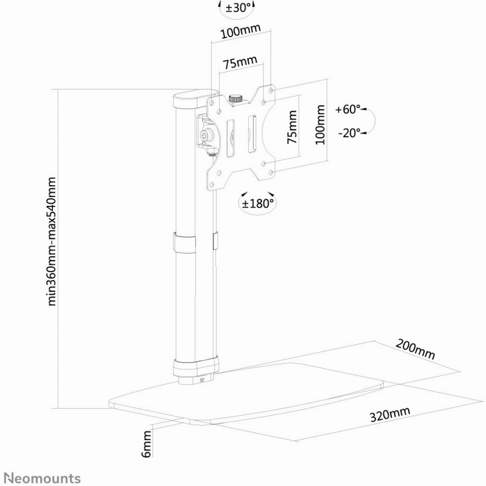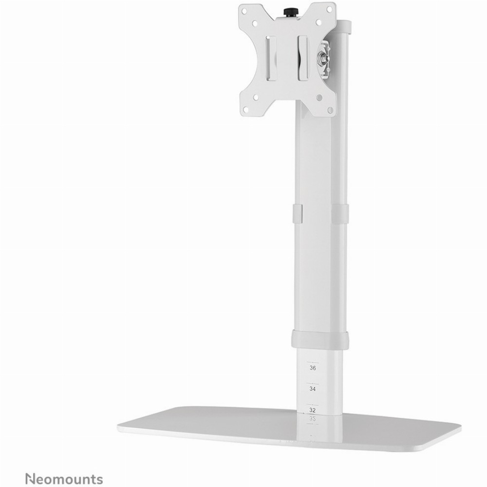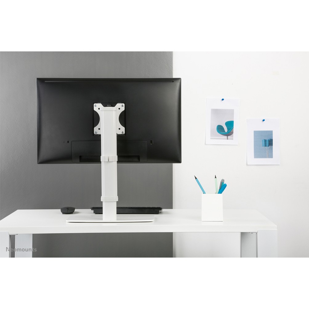 Die Neomounts Tischhalterung, Modell FPMA-D890WHITE , ist eine neig-, schwenk- und drehbar Tischhalterung für Flachbildschirme bis 30" (76 cm). Diese Halterung mit Standfuß ist eine gute Wahl für platzsparende Platzierung auf Schreibtischen. Neomounts neig-(80°), dreh- (360°) und schwenkbare (60°) Technologie ermöglicht es die Halterung auf jeden Betrachtungswinkel zu ändern, um vollumfänglich von den Möglichkeiten des Flachbildschirms zu profitieren. Die Halterung ist manuell höhenverstellbar von 36 bis 54 Zentimetern. Verstecken Sie Ihre Kabel um den Arbeitsplatz schön und ordentlich zu halten. Durch eine ergonomische Halterung können Nacken- und Rückenbeschwerden vermieden werden. Ideal für den Einsatz in Büros und auf Theken oder in einem Empfangsbereich. Neomounts FPMA-D890WHITE hat einen Drehpunkt und eignet sich für Bildschirme bis 30" (76 cm). Die Tragfähigkeit dieses Produkts ist für einen Bildschirm bis 6 kg. Die Tischhalterung ist geeignet für Bildschirme mit VESA 75x75 oder 100x100 mm Lochmuster. Verschiedene andere Lochmuster können unter Verwendung von Neomounts Vesa-Adapterplatten abgedeckt werden. Das benötigte Befestigungsmaterial ist im Lieferumfang enthalten.Neomounts FPMA-D890WHITE ist eine Tischhalterung für Flachbildschirme bis 30" (76 cm).
