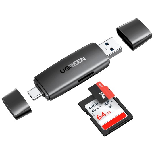 Ugreen 80191. Kompatible Speicherkarten: MicroSD (TransFlash), MicroSDHC, MicroSDXC, SD, Produktfarbe: Schwarz, Datenübertragungsrate: 5000 Mbit/s. Schnittstelle: USB 3.2 Gen 1 (3.1 Gen 1) Type-A/Type-C