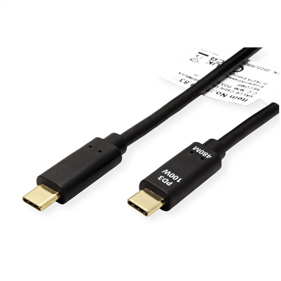 VALUE 11.99.8308. Kabellänge: 1 m. Anschluss 1: USB C, Anschluss 2: USB C, USB-Version: USB 2.0, Max. Datenübertragungsrate: 0,48 Gbit/s, Produktfarbe: Schwarz