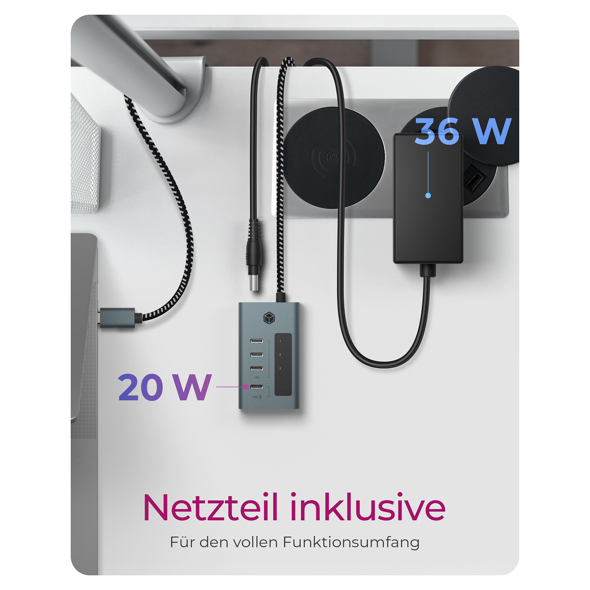 - Vier USB Type-C® Ports über einen Anschluss: Über einen leistungsstarken USB Type-C® Stecker können Sie Ihr Gerät um insgesamt vier USB-C Ports erweitern und damit auch unterwegs von besonders schnellen Datentransferraten profitieren