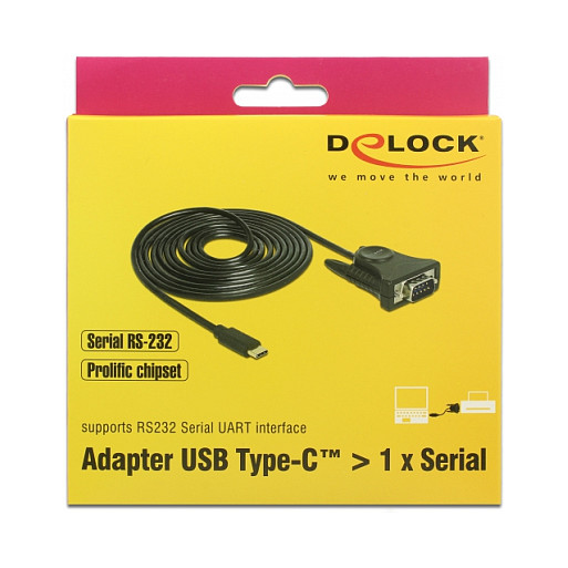 Dieser USB Type-C™ zu seriell Adapter von Delock bietet einen kompatiblen RS-232 DB9 Anschluss für Drucker, Messgeräte, Steuerungen, IoT Geräte etc.