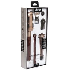 Mit dem selfie BT deluxe bietet ultron ein edles Rundum-Paket. Der Selfie-Stick kommt mit einer Aluminium-Legierung in stillvollem Gold und einem Haltegriff in Lederoptik. Passend dazu ist eine braune Trageschlaufe in Lederoptik und ein ebenfalls goldfarbenes Dreibein-Stativ im Liefer-