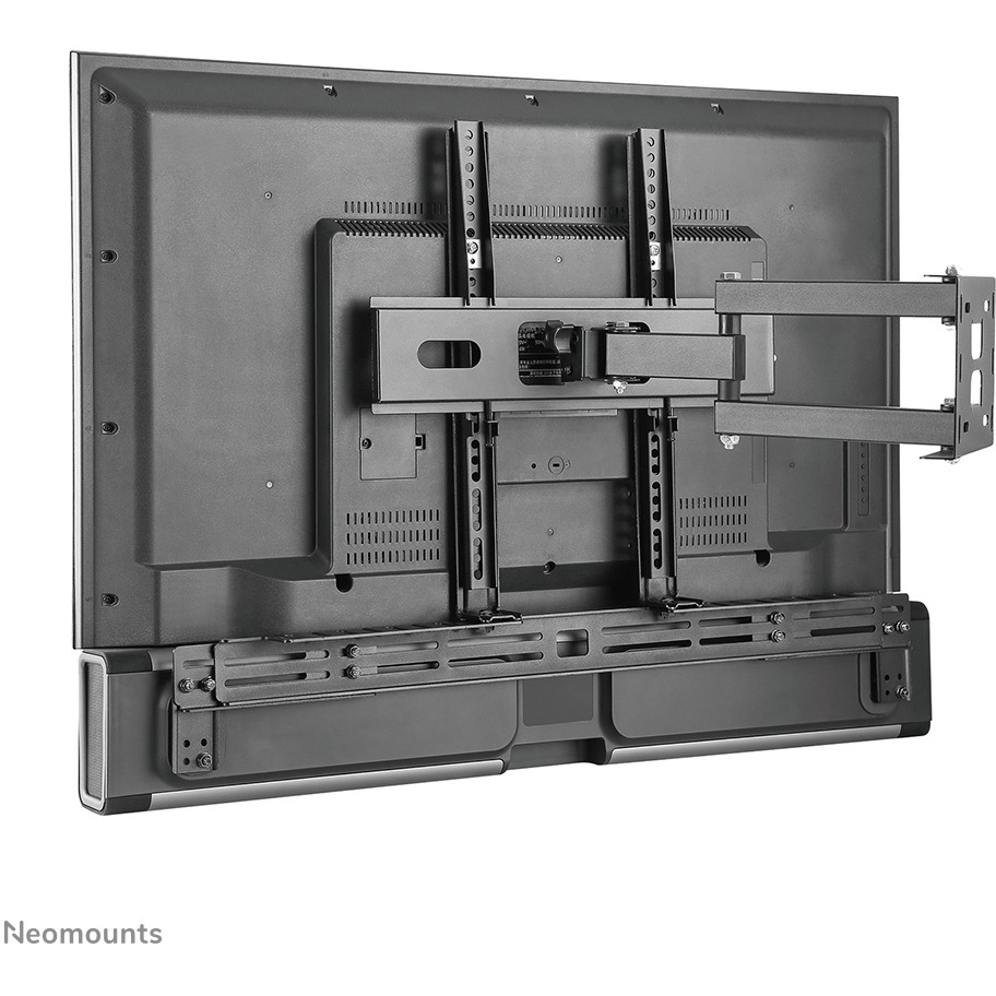 Da die Installation der AWL29-750BL1 am Bildschirm erfolgt, bewegt sie sich einfach mit dem Bildschirm, während er in Höhe, Tiefe oder in jede andere Betrachtungsposition eingestellt wird. Die Halterung ist in der Breite verstellbar und deckt die VESA-Löcher Ihrer Halterung ab. Aus diesem Grund garantiert die Halterung auch eine schnelle Montage.Neomounts AWL29-750BL1 universelle Videobar-/Sounbar-/Lautsprecher-Halterung, tiefenverstellbar (0-4,2 cm) - Schwarz