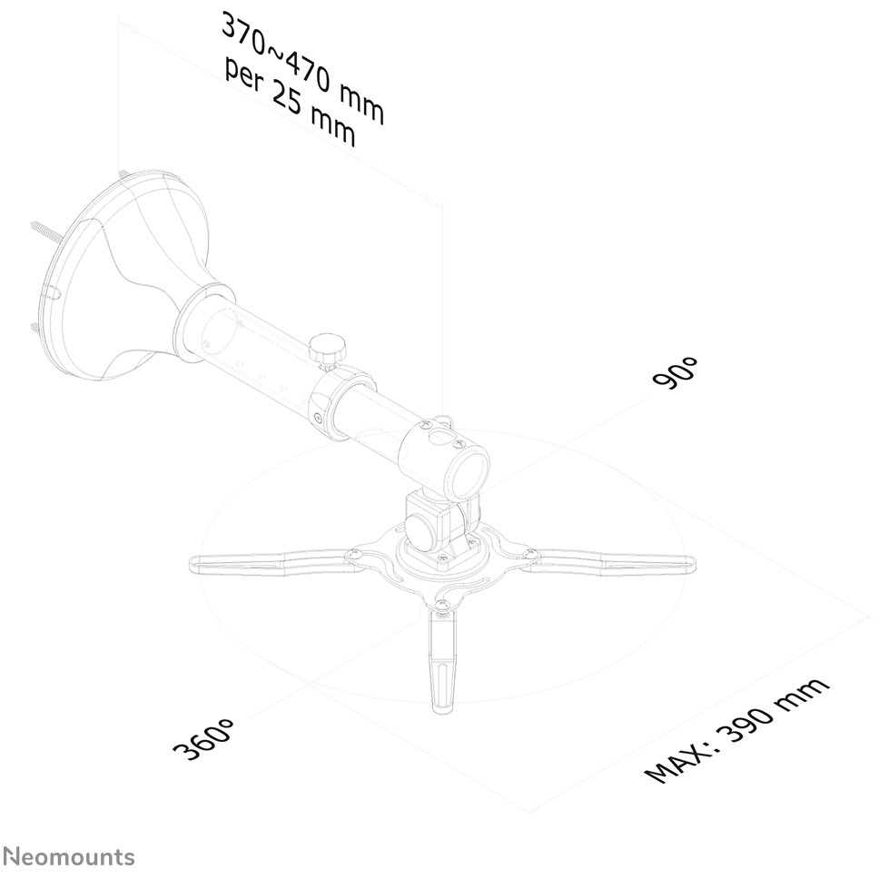 Diese universelle Neomounts Projektor Wandhalterung, Modell BEAMER-W050BLACK, ermöglicht es Ihnen einen Projektor - Beamer/Strahler an jede Wand zu montieren. Die Verwendung einer Wandhalterung bietet höchste Ansprüche an die Fähigkeiten des Projektors profitieren. Diese Unterstützung ist höhenverstellbar von 31 bis 47 cm und bietet reichlich Platz für Projektoren bis 12 Kilogramm. Die neig-, dreh- und schwenkbare Einstellungsmöglichkeiten sorgen optimaler Ausnutzung der Projektionsfläche. Kabelmanagement in der HAlterung. Einfach an die am Projektor vorgesehenen Gewinde zu installieren. Alle Befestigungsmaterialien im Lieferumfang enthaltenNeomounts BEAMER-W050BLACK ist eine universelle Wandhalterung für Projektoren.