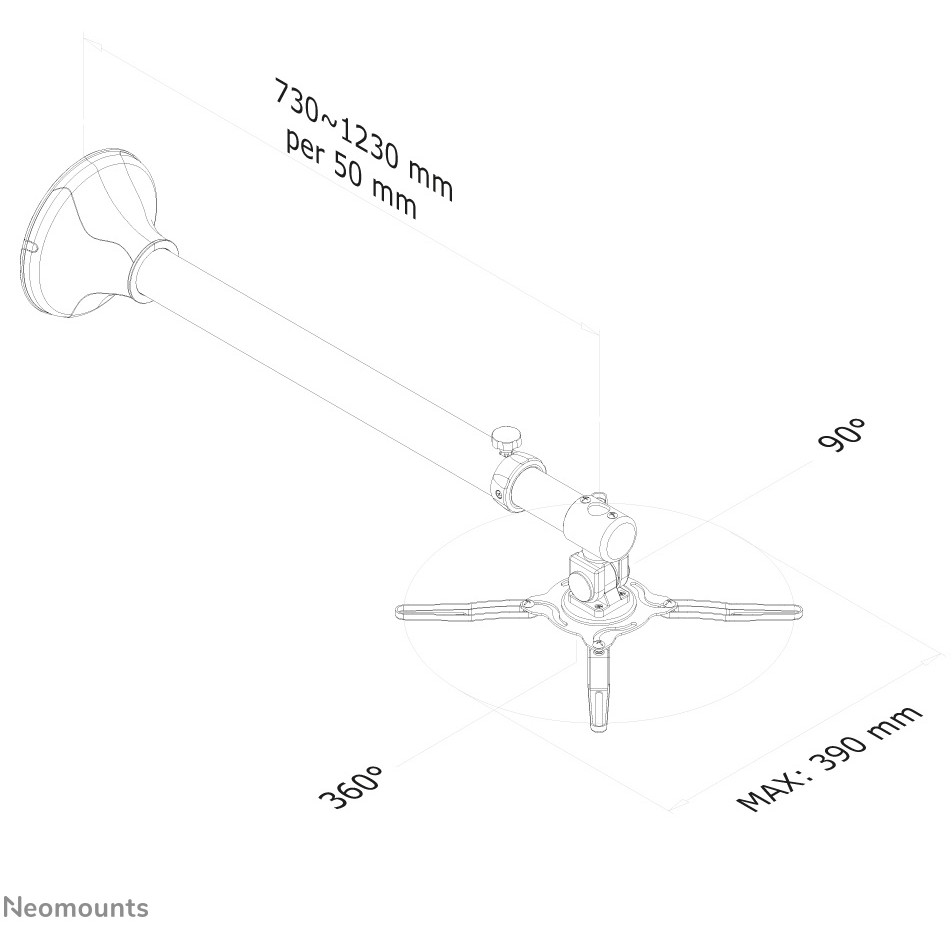 Diese universelle Neomounts Projektor Wandhalterung, Modell BEAMER-W100SILVER, ermöglicht es Ihnen einen Projektor - Beamer/Strahler an jede Wand zu montieren. Diese WProjektorhalterung unterstützt einen Wandabstand von 79 bis 129 cm, für Projektoren bis 12 Kilogramm. Die neig-, dreh- und schwenkbare Einstellungsmöglichkeiten sorgen für die optimale Ausnutzung der Projektionsfläche. Kabelmanagement in der Halterung. infach an die am Projektor vorgesehenen Gewinde zu installieren. Alle Befestigungsmaterialien im Lieferumfang enthalten.Neomounts BEAMER-W100SILVER ist eine universelle Wandhalterung für Projektoren.