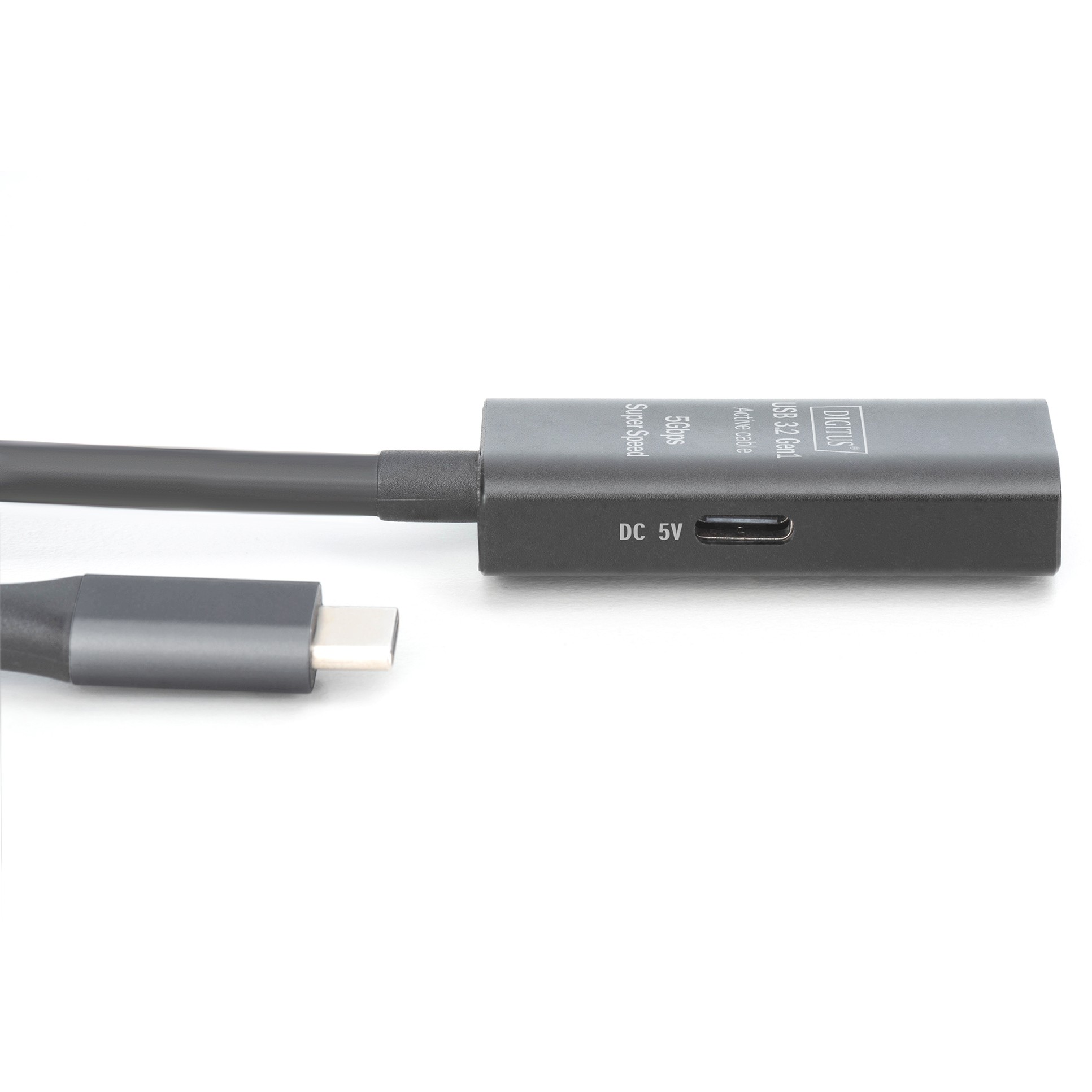 Die aktive USB 3.2 Gen1 Kabelverlängerung von Digitus erweitert die Reichweite Ihrer USB-Geräte um 5 Meter und ermöglicht dabei weiterhin schnelle Datenübertragungen bis zu 5 Gbit/s. Für Ihre Geräte wie Speichersticks, Tablets oder Smartphones – auch über größere Distanzen ohne Geschwindigkeitsverlust geeignet. Dieses Kabel ist ideal geeignet für Konferenz-/Meetingräume, wenn Sie Ihre Webcam verbinden wollen oder wenn Sie ein USB-Gerät in größerer Entfernung anschließen müssen, wie beispielsweise einen Multifunktionshub mit verschiedenen Schnittstellen, oder Geräte, die nur schwer erreichbar sind. Schließen Sie dazu per einfachem Plug-and-Play Ihr Notebook/PC mit USB-C - Anschluss an das Kabel ihres Endgerätes an. Nie wieder Verbindungsprobleme bei längeren USB-Kabelverbindungen!