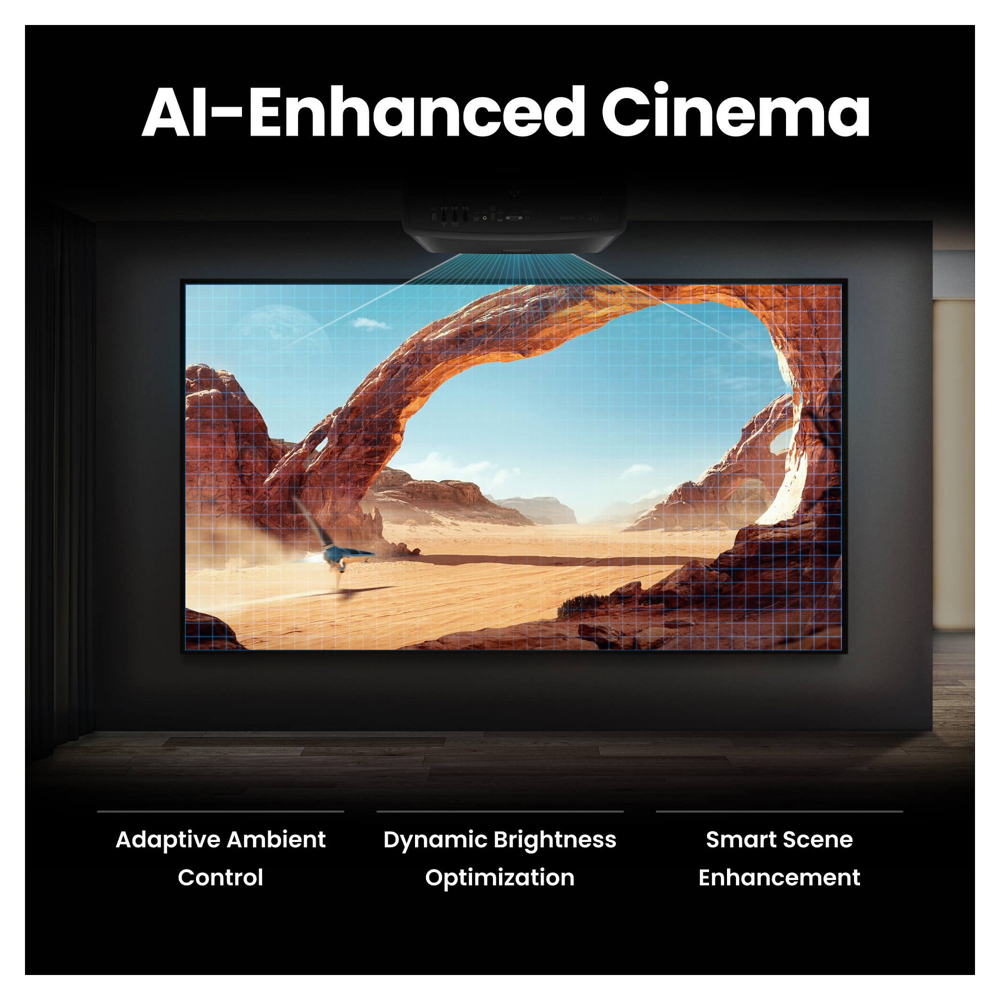 Der KI-Kinomodus passt sich dem Umgebungslicht an und sorgt für präzise Farben und Details.