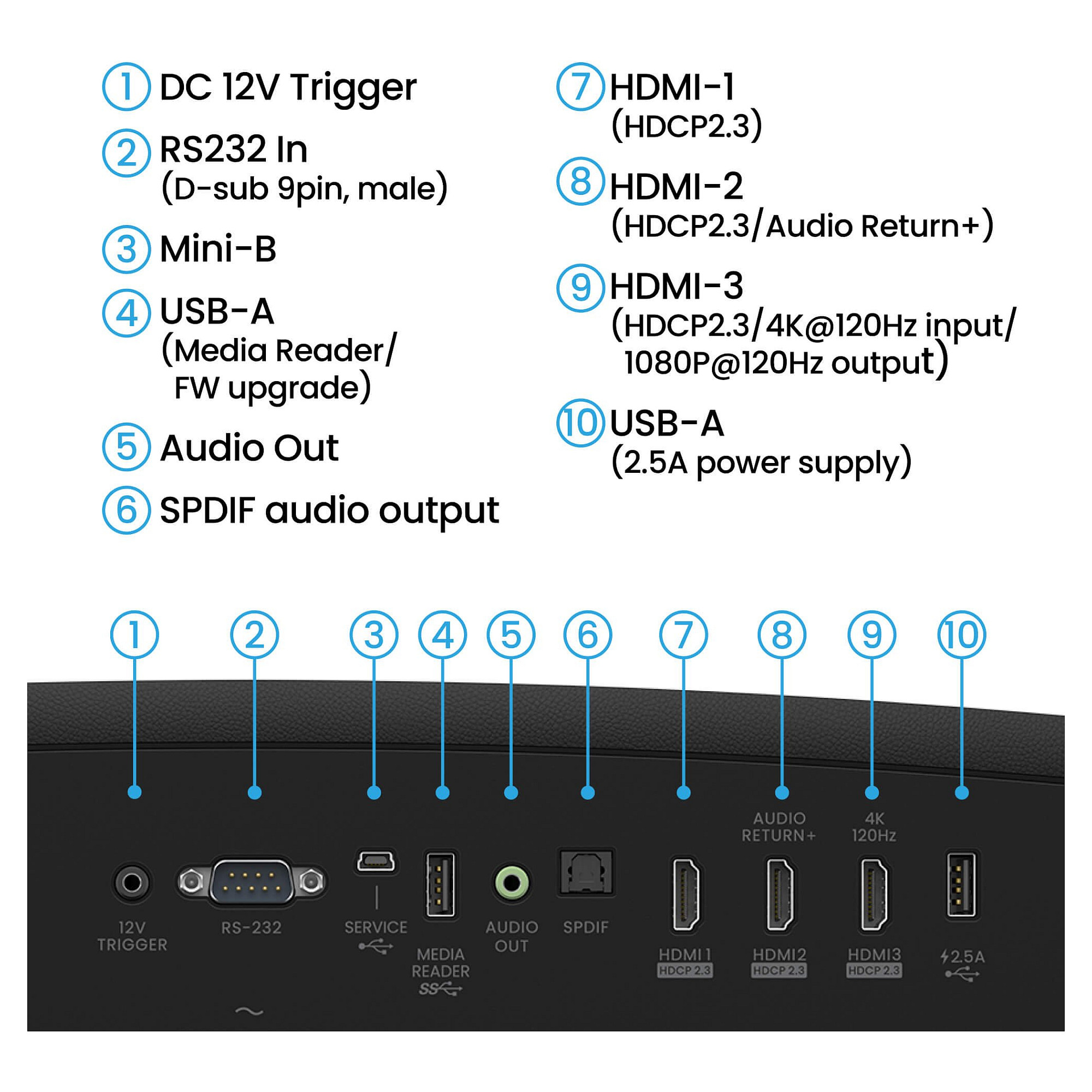 Der W2720i verwandelt dein Heimkino in ein Multimedia-Erlebnis, indem er sich mühelos mit verschiedenen Unterhaltungsquellen verbindet. Dank zahlreicher universeller Anschlüsse, darunter drei HDMI 2.1 (HDCP 2.3*), SPDIF und eARC für 7.1-Kanal-Sound, sowie Dolby Atmos Audio-Passthrough, kannst du originale, hochauflösende Audiosignale direkt über ein einziges HDMI-Kabel an dein Soundsystem übertragen. So genießt du eine erstklassige Klangqualität und maximales Entertainment mit minimalem Aufwand.