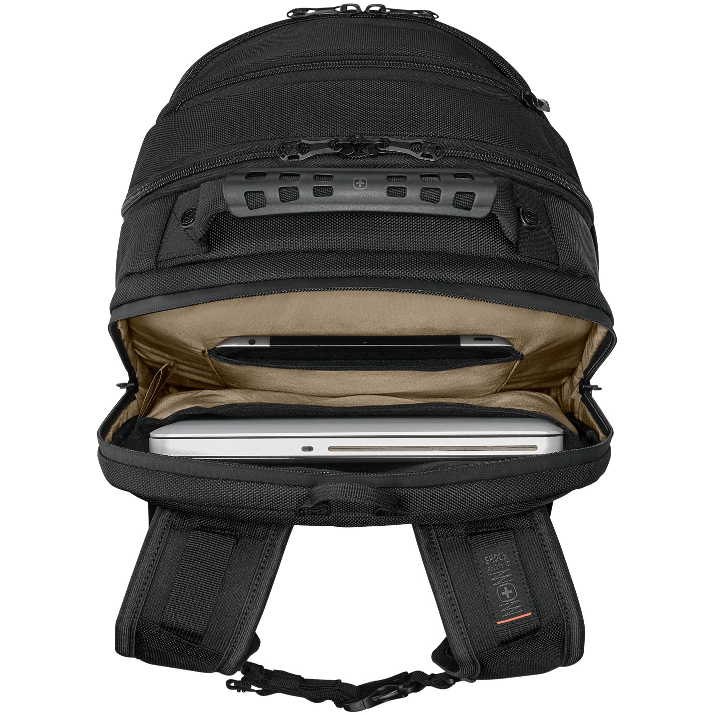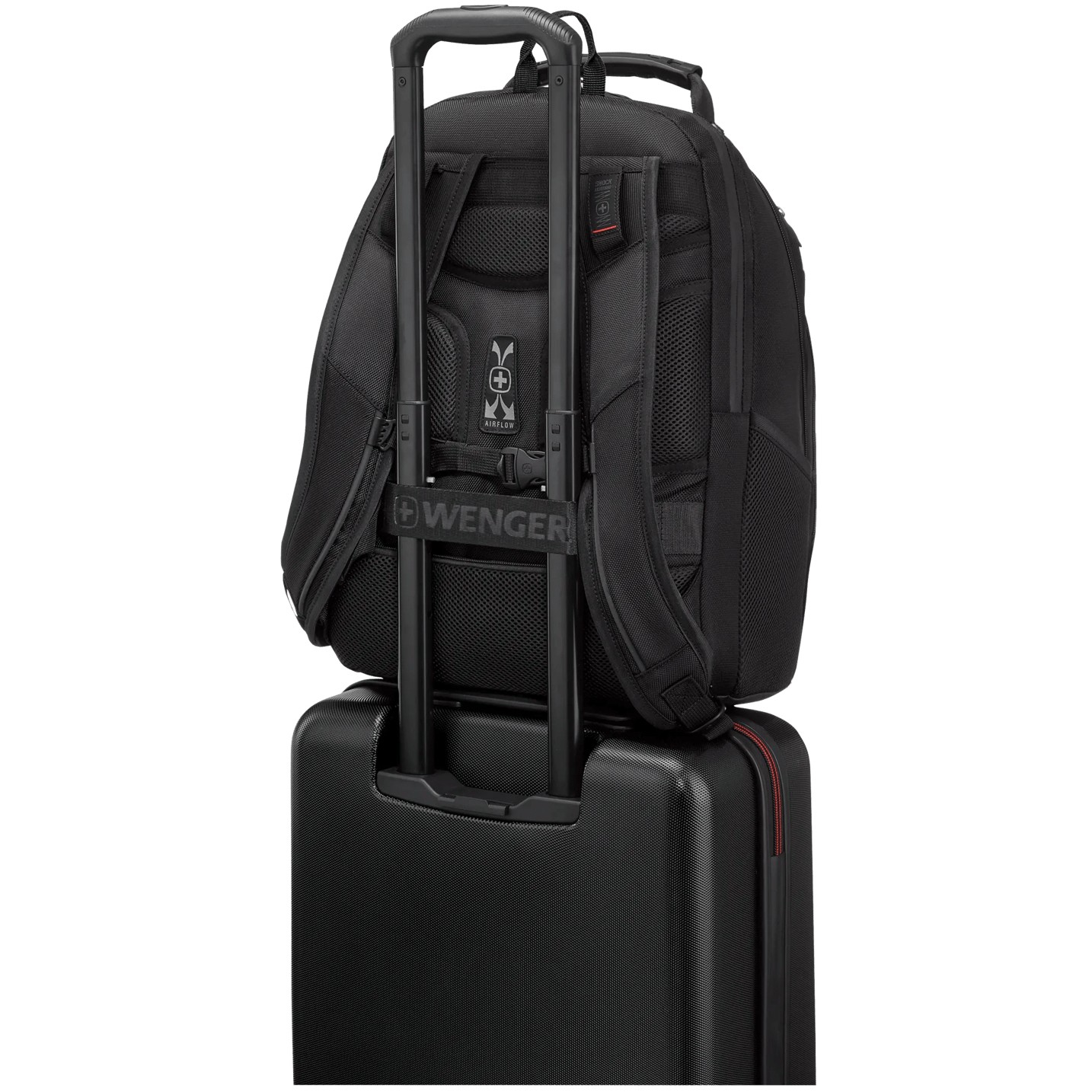 Reisen Sie jetzt noch sorgloser mit dem Legacy Black Series Laptop Backpack. Er ist perfekt für aktive Geschäftsleute und verfügt über ein robustes Aussenmaterial aus recycelten PET-Flaschen. Das gepolsterte Triple Protect Fach mit abschliessbaren und beschichteten Reissverschlüssen bietet Platz für einen Laptop bis zu 16″; in einem weiteren Fach kann Ihr 10″ Tablet verstaut werden. Die atmungsaktive Rückenpolsterung und die stossdämpfenden Schulterriemen sind besonders komfortabel. Im Schnellzugriffsfach verstauen Sie Ihre wichtigsten Dinge, während Wertsachen sicher im versteckten Sicherheitsfach aufgehoben sind. Mit dem Trolleyriemen und der CaseBase Stabilisierungsplattform wird das Reisen zum Kinderspiel.