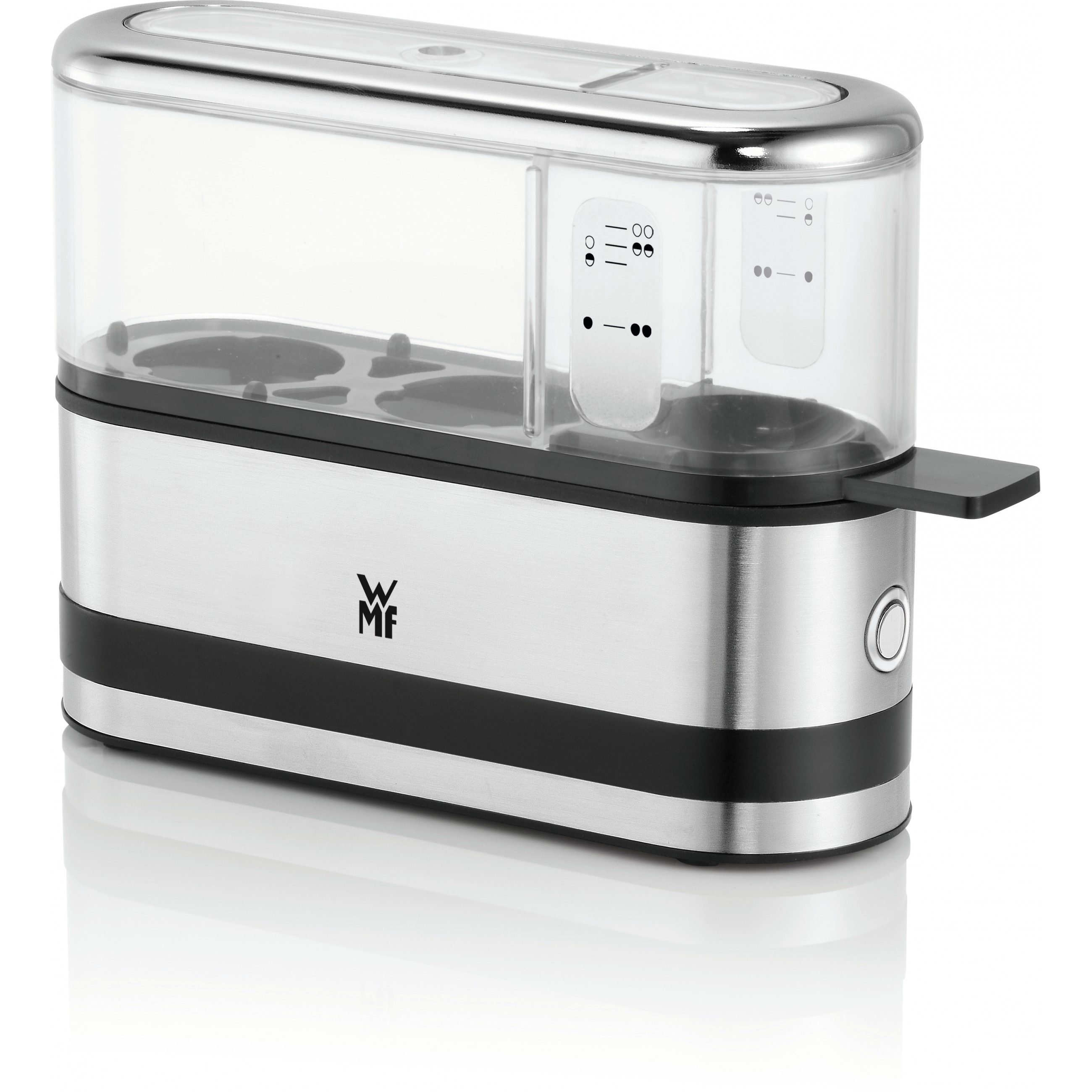 WMF präsentiert mit COUP die erste Generation der WMF KÜCHENminis. Die COUP Frühstücksserie aus Cromargan Edelstahl - bestehend aus der AromaOne Filterkaffeemaschine mit 1-Tassen Funktion, einem 0,8 Liter Wasserkocher, einem 1-Scheiben Toaster, einem 2-Eier-Kocher und einem 0,8 Liter Kompaktmixer - wurde entwickelt im Hinblick auf eine deutliche Platzersparnis, eine Reduzierung im Einsatz wertvoller Ressourcen und um Energie zu sparen.