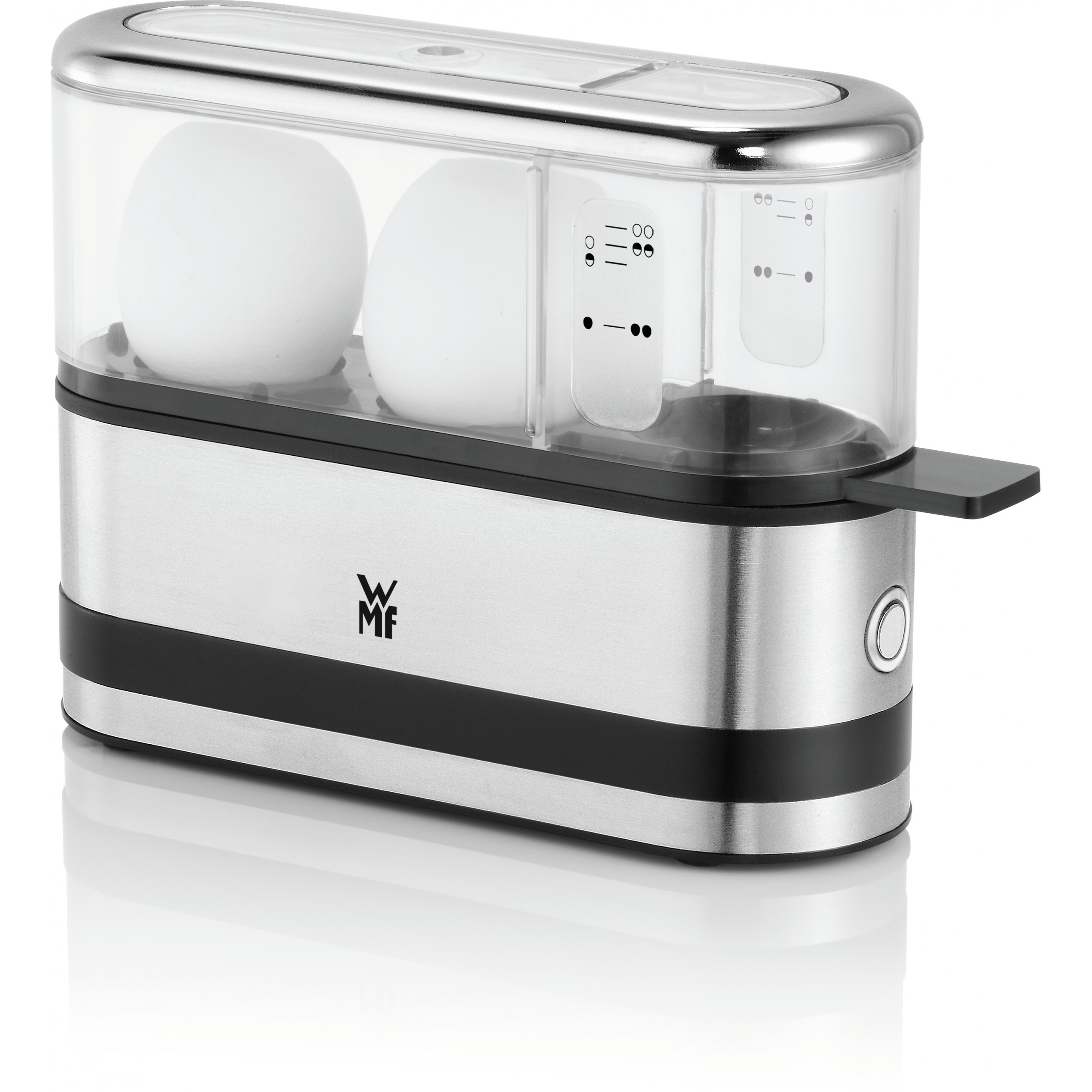 Der Mini-Eierkocher ist platzsparend und kocht ein bis zwei Frühstückseier von Größe S bis XL. Die transparente Haube aus hochwertigem Tritan istfrei von BPA, stabil und leicht zu reinigen. Mit dem integrierten Messbecher lässt sich die Wassermenge passend zur Eiergröße und dem gewünschten Härtegrad dosieren. Sobald die Eier fertig zubereitet sind, erklingt ein akustisches Signal.
