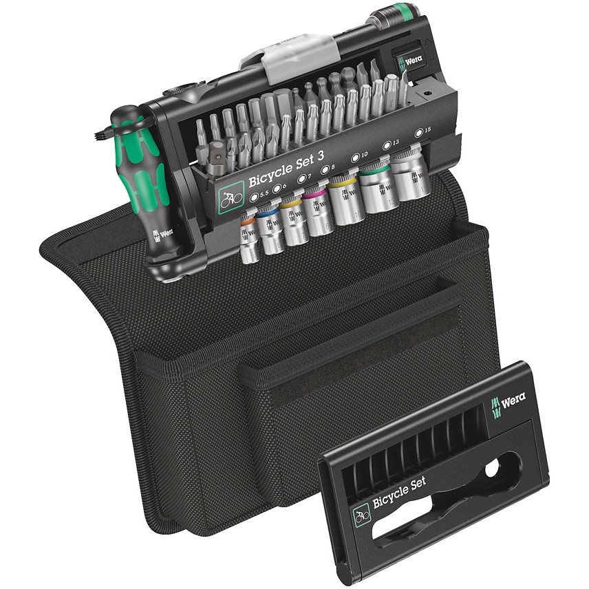 Fahrradwerkzeug-Set mit Ratsche, Bit, Nüssen und einem Bit-Handhalter auf engstem Raum. Perfekt als universeller Begleiter mit einer Vielzahl von Schraubanwendungen. Hochwertiger Bit-Handhalter mit Kraftform Plus Griff für angenehm ergonomisches Arbeiten, bei dem Blasen und Schwielen vermieden werden. Harte Griffzonen für hohe Arbeitsgeschwindigkeit, weiche Griffzonen für hohe Drehmomentübertragung. Bit-Ratsche für schnelles Arbeiten, wenn das Verschrauben per Maschine oder herkömmlichem Handwerkzeug aus Platzgründen nicht möglich ist. Schnelles Umschalten von Links- in Rechtslauf und umgekehrt über den Umschalthebel. Schnelles Drehen (mit dem Daumen) über die Rändelung am Knarrenkopf. Einfachste Bedienung auch mit nur einer Hand. Ergonomischer Knarrenkopf/-hebel: Kraftform-Geometrie mit perfekt geformten Anlageflächen für die Finger. Durch die direkte Bitaufnahme im Knarrenkopf kleinster Werkzeugaufbau für geringe Arbeitshöhen. Kleiner Rückholwinkel von 6° für präzises Arbeiten. Robuste gesenkgeschmiedete Vollstahlausführung. Drehmomente von über 65 Nm. Der Bit-Halter Rapidaptor mit Schnelldrehhülse: Als Verlängerung einsetzbar, für blitzschnellen Bitwechsel ohne Hilfswerkzeug selbst kleinster Bitgrößen mit nur einer Hand.