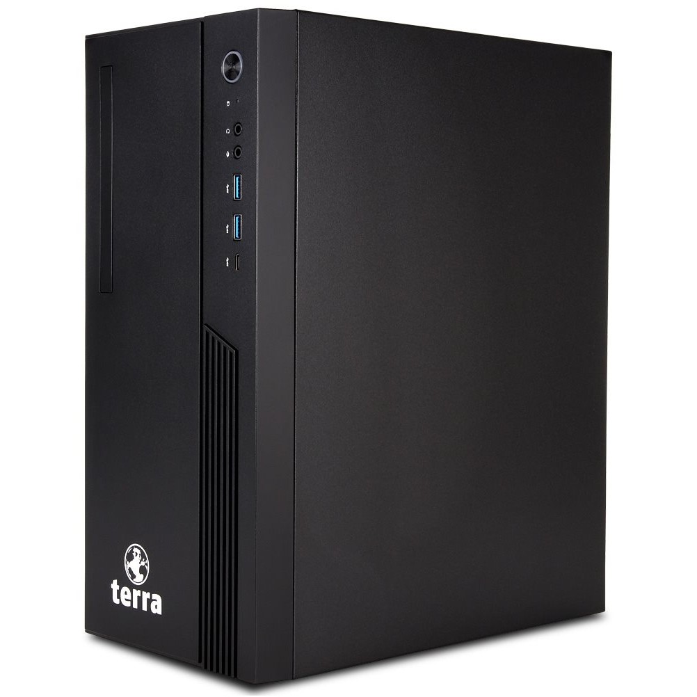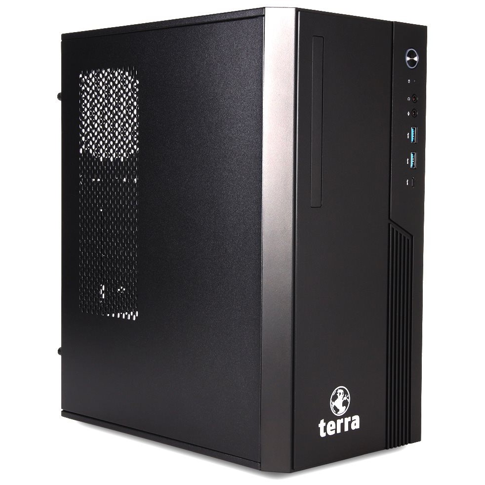 TERRA PC-BUSINESS 4000 SILENT. Prozessorfamilie: Intel® Core™ i3, Prozessor: i3-12100. Speicherkapazität: 8 GB, Interner Speichertyp: DDR5-SDRAM. Gesamtspeicherkapazität: 500 GB, Speichermedien: SSD, Optisches Laufwerk - Typ: DVD±RW. Eingebautes Grafikkartenmodell: Intel UHD Graphics 730. Installiertes Betriebssystem: Windows 11 Pro. Stromversorgung: 350 W. Gehäusetyp: Micro Tower. Gewicht: 5,2 kg