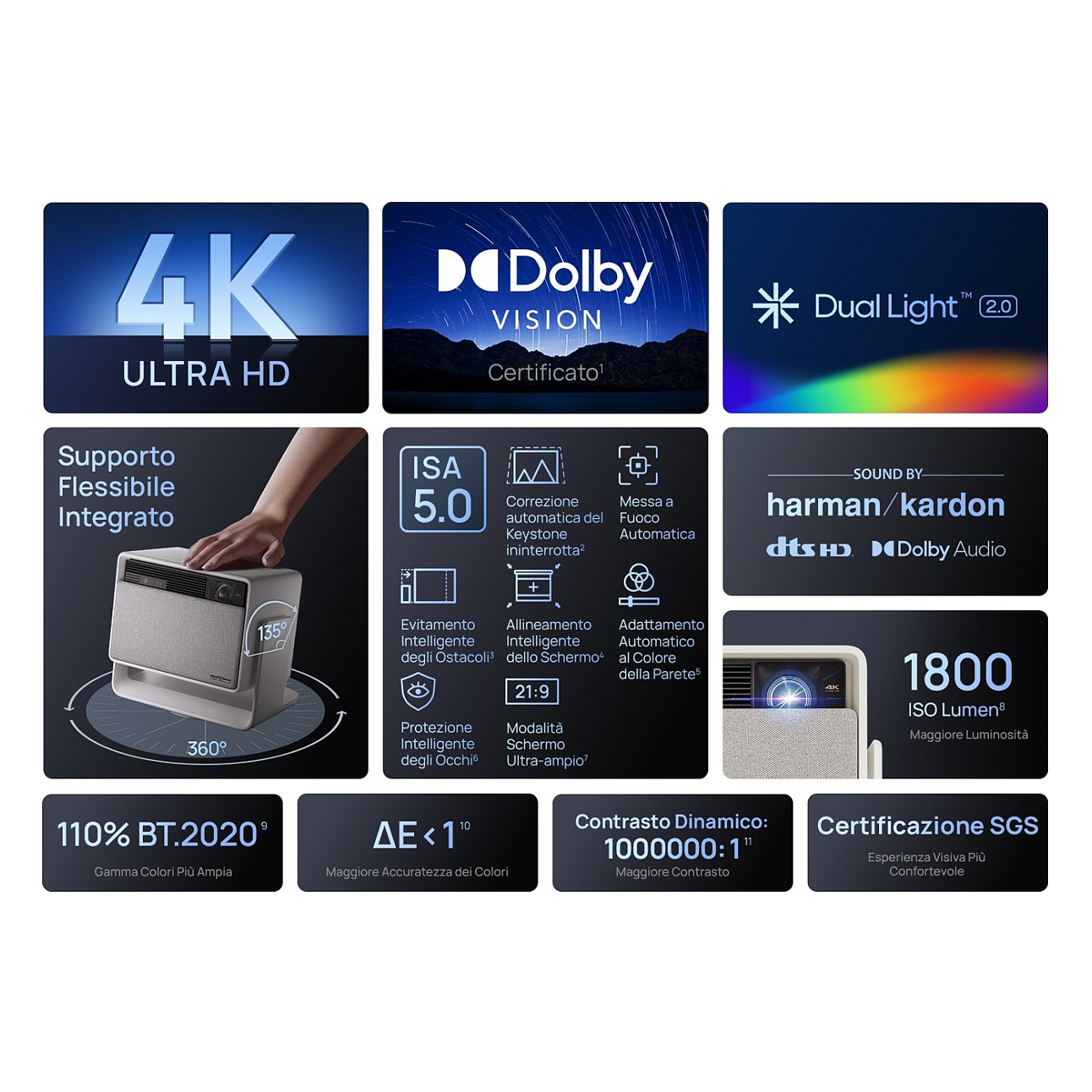 XGIMI Projektoren. Projektorhelligkeit: 1800 ANSI Lumen, Projektionstechnologie: LED, native Auflösung des Projektors: UHD 4K (3840x2160). Typ der Lichtquelle: Lampe, Lebensdauer der Lichtquelle: 20000 h, Lampenleistung: 55 W. Fokus: Auto. Geräuschpegel: 28 dB. RMS-Leistung: 24 W, Eingebaute Audio-Decoder: Dolby Digital, Dolby Digital Plus