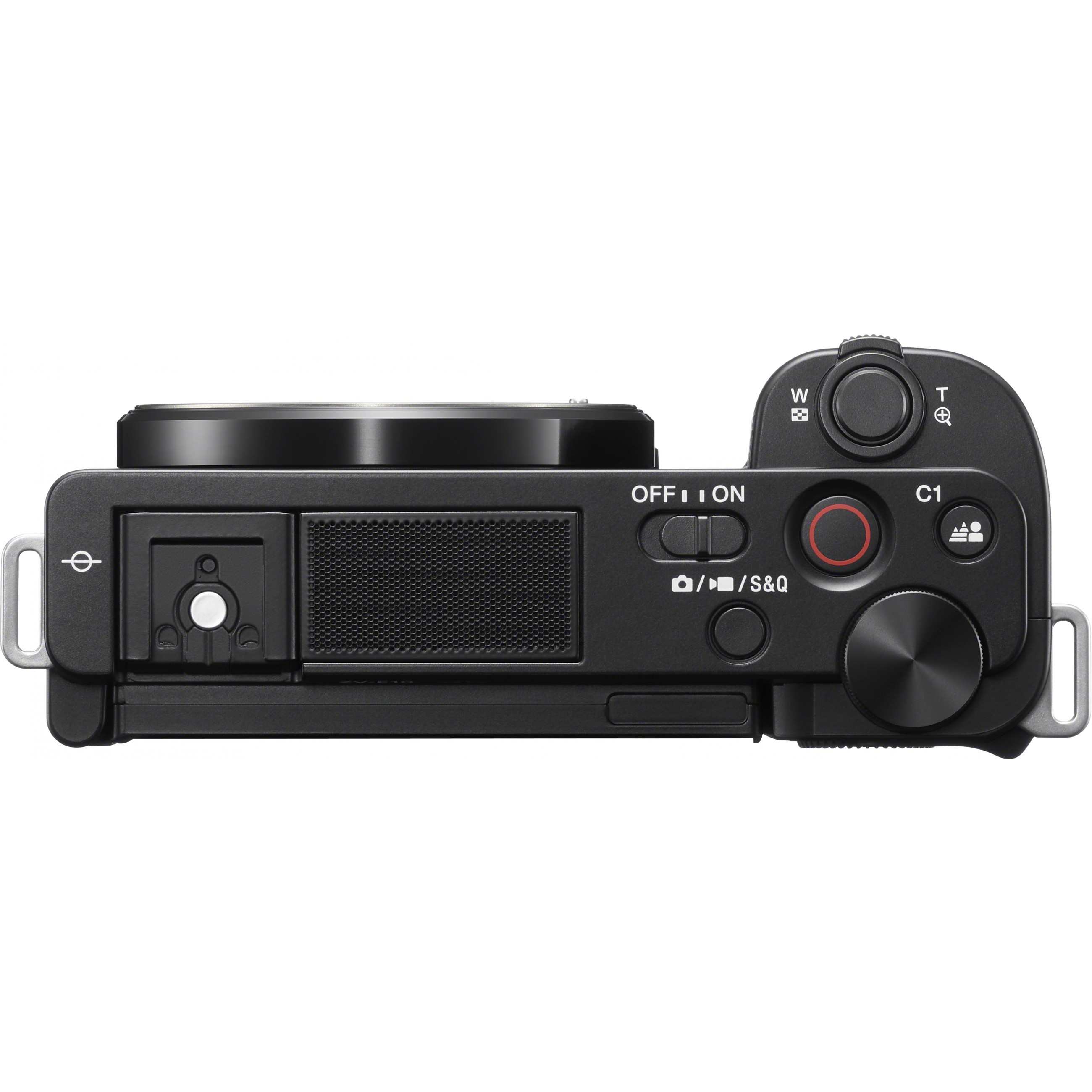Sony α ZV-E10L. Kamera-Typ: MILC, Megapixel (ca.): 24,2 MP, Sensor-Typ: CMOS, Maximale Bildauflösung: 6000 x 4000 Pixel. ISO-Empfindlichkeit (max): 320000. Digitaler Zoom: 8x, Brennweitenbereich: 16 - 50 mm. Kürzeste Verschlusszeit: 1/4000 s. HD-Typ: 4K Ultra HD, Maximale Video-Auflösung: 3840 x 2160 Pixel. Bildschirmdiagonale: 7,62 cm (3"), Touchscreen. Gewicht: 343 g. Produktfarbe: Schwarz