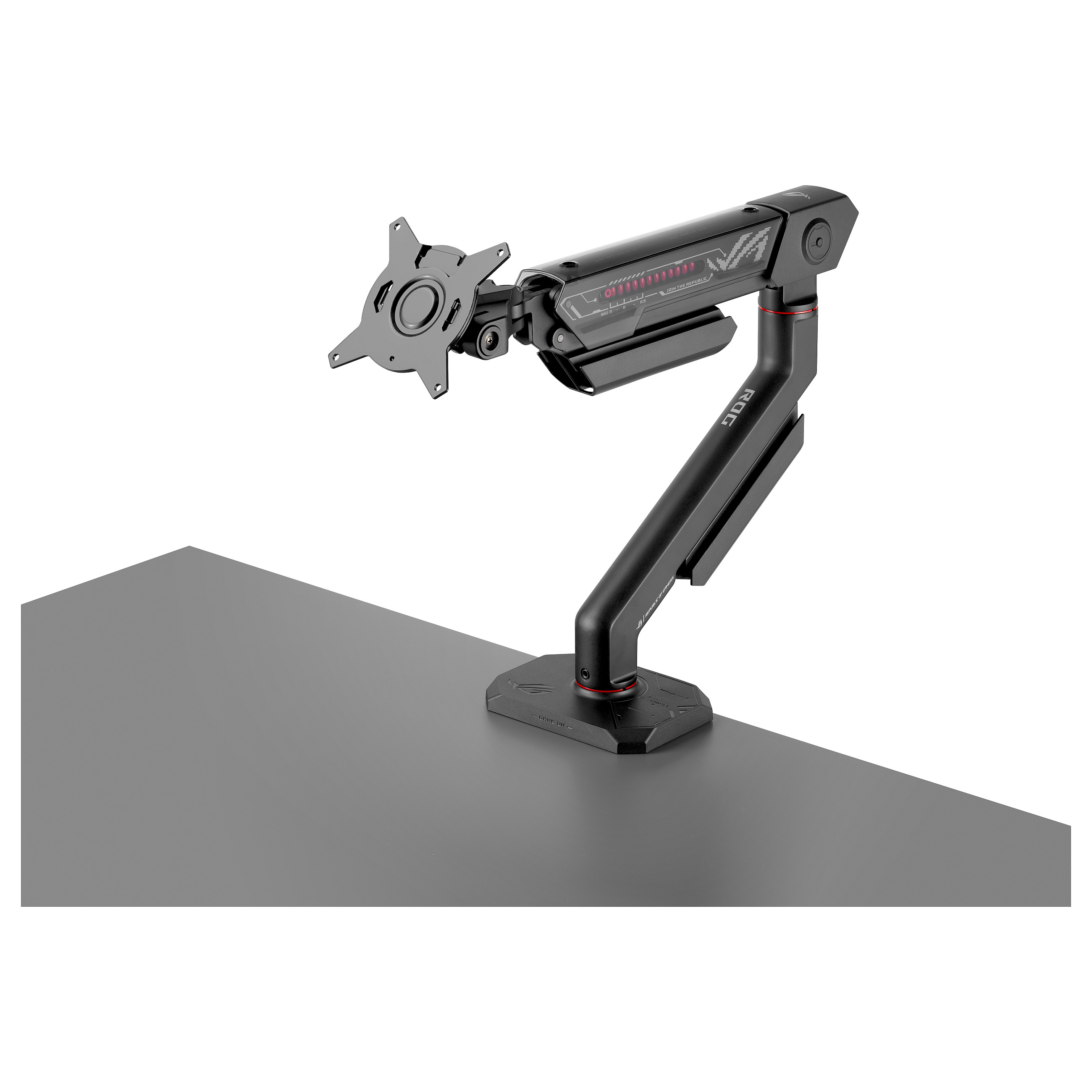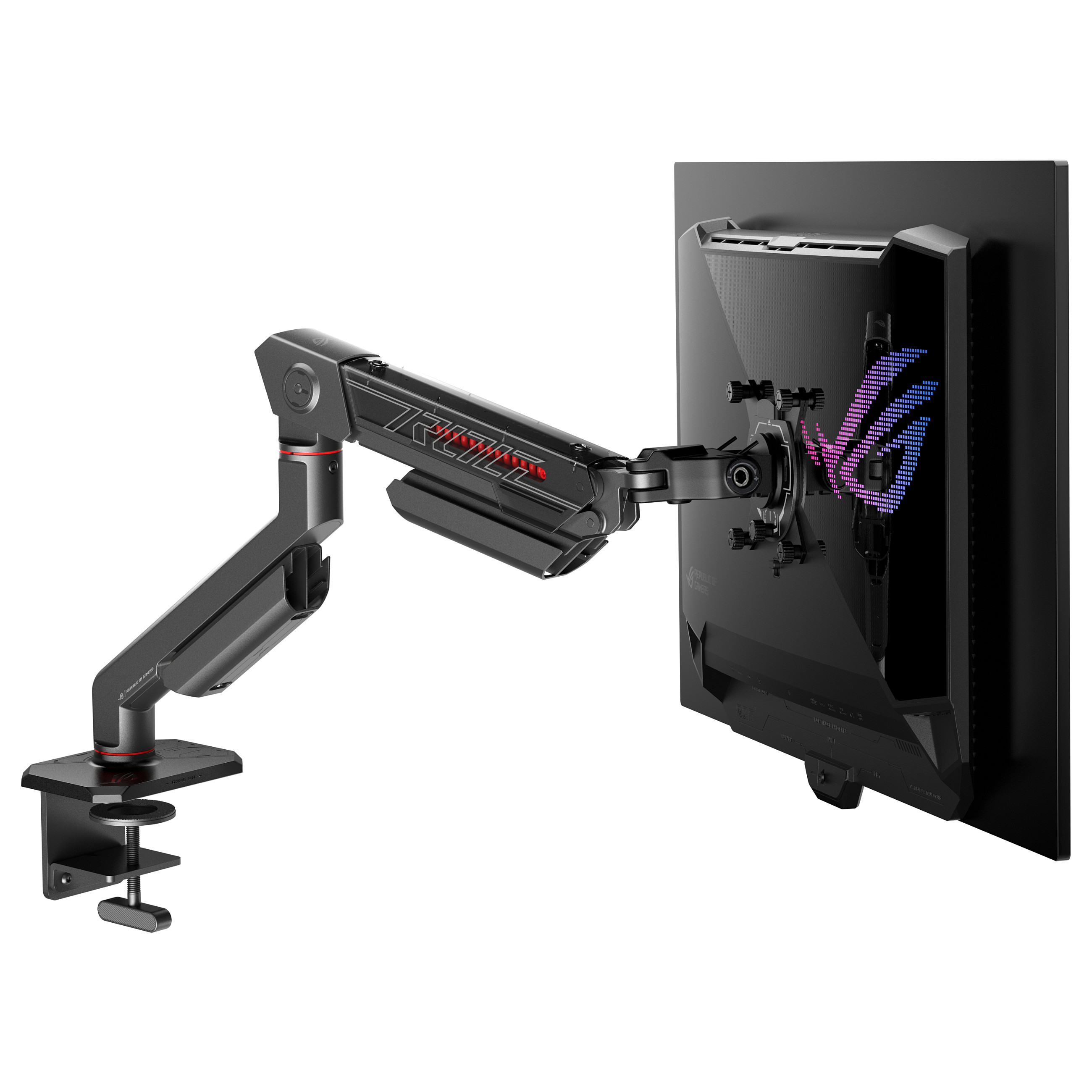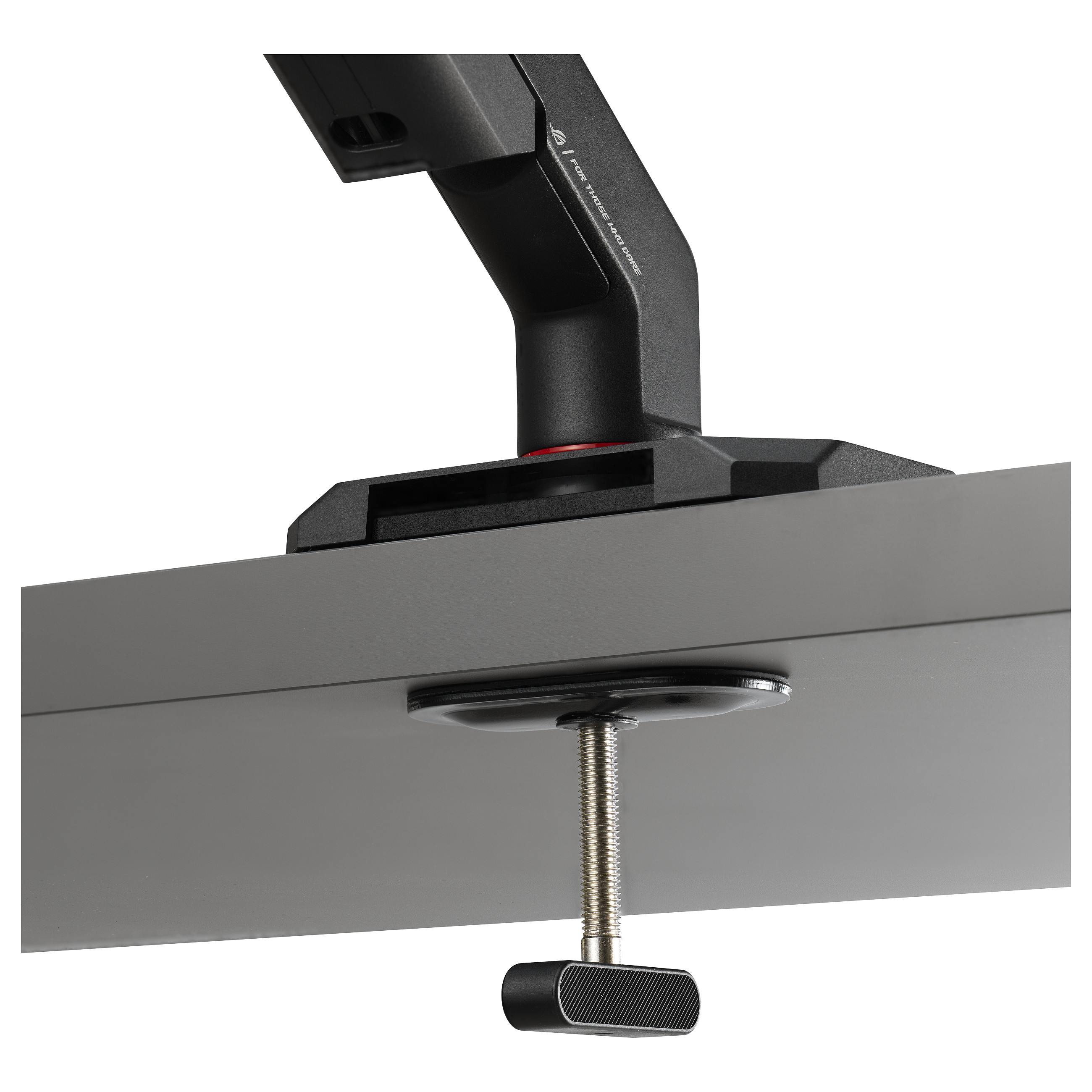 ROG Ergo Monitorarm AAS01R - Mechanisch gefederte Monitorhalterung mit Tischklemme und Durchschraubbefestigung, hält bis zu 49 Zoll* bei 13,5 kg, dreh-, schwenk-, neig-, dreh- und höhenverstellbar, beidseitiges Kabelmanagement, VESA 100 x 100 mm