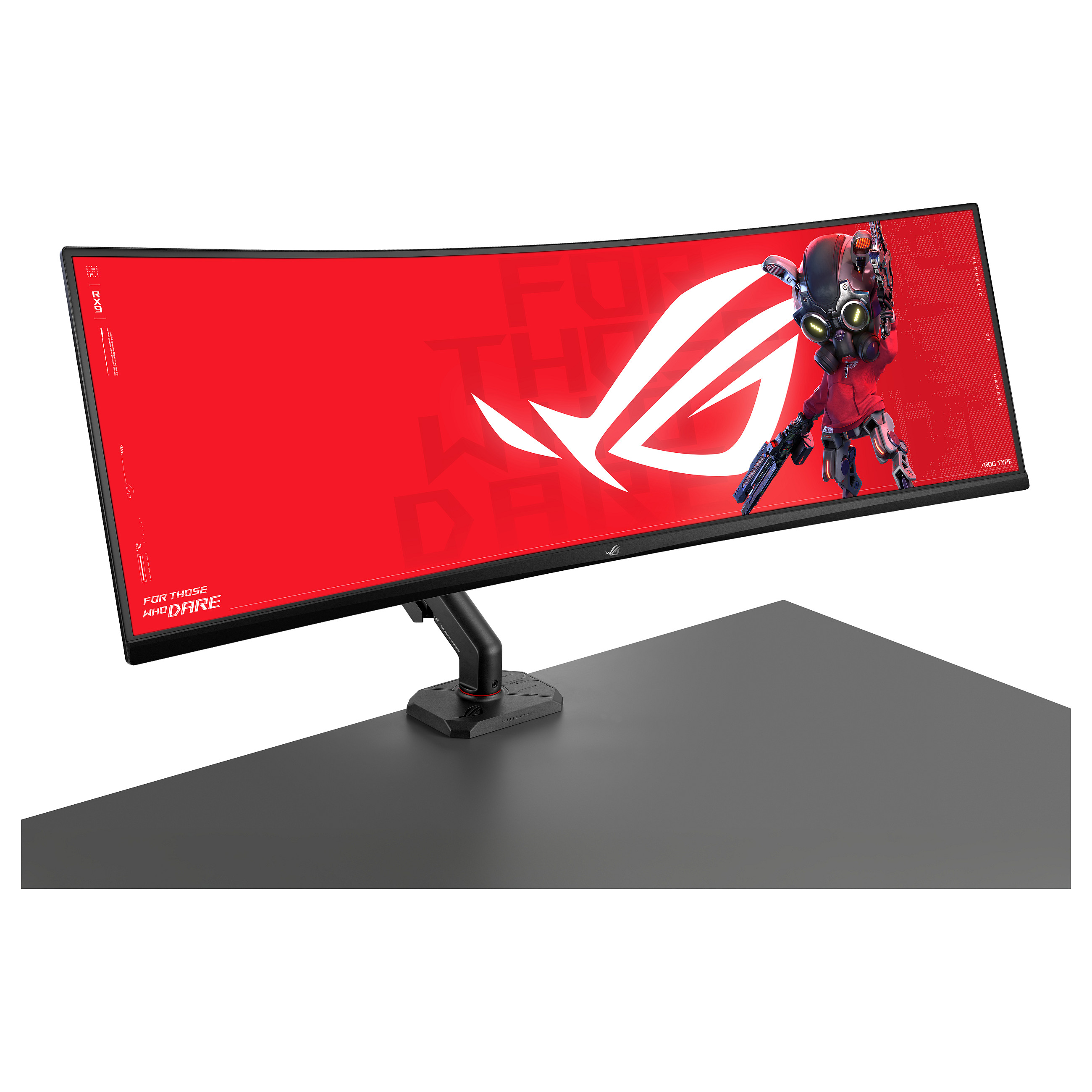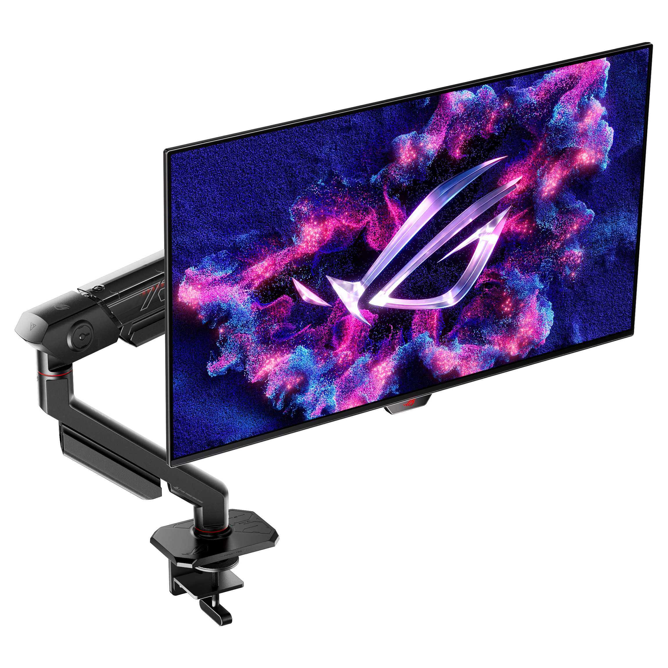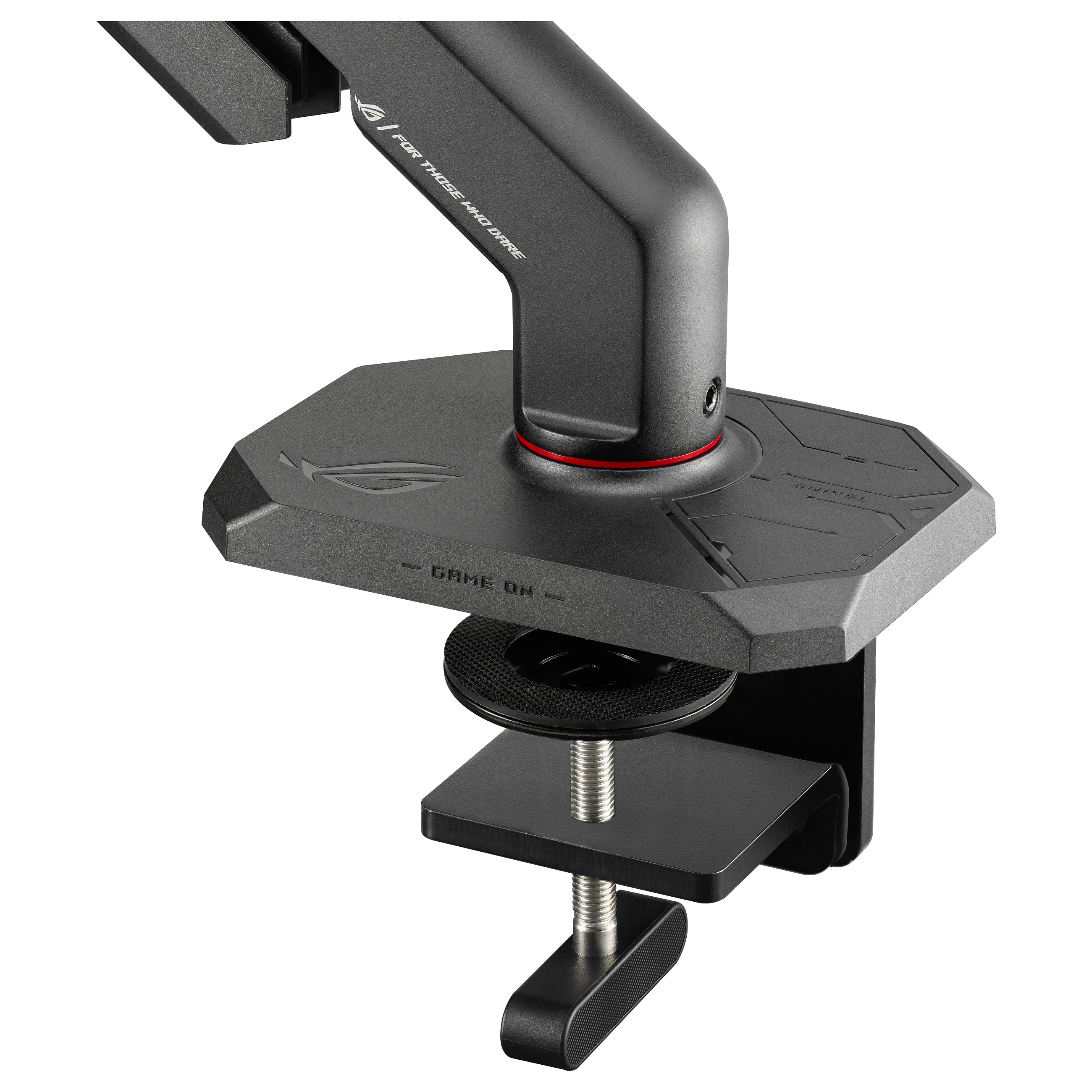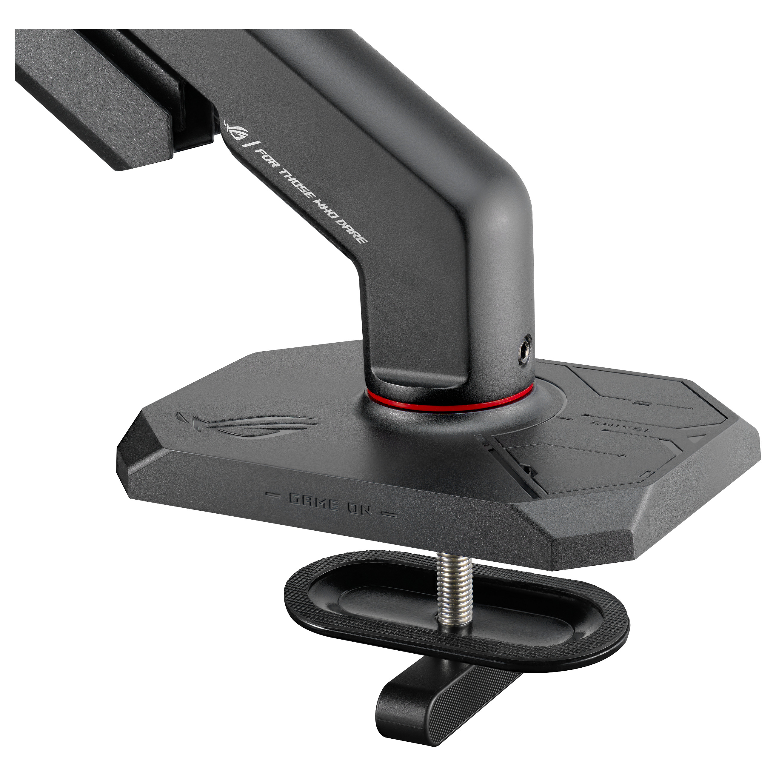 ROG Ergo Monitorarm AAS01R - Mechanisch gefederte Monitorhalterung mit Tischklemme und Durchschraubbefestigung, hält bis zu 49 Zoll* bei 13,5 kg, dreh-, schwenk-, neig-, dreh- und höhenverstellbar, beidseitiges Kabelmanagement, VESA 100 x 100 mm