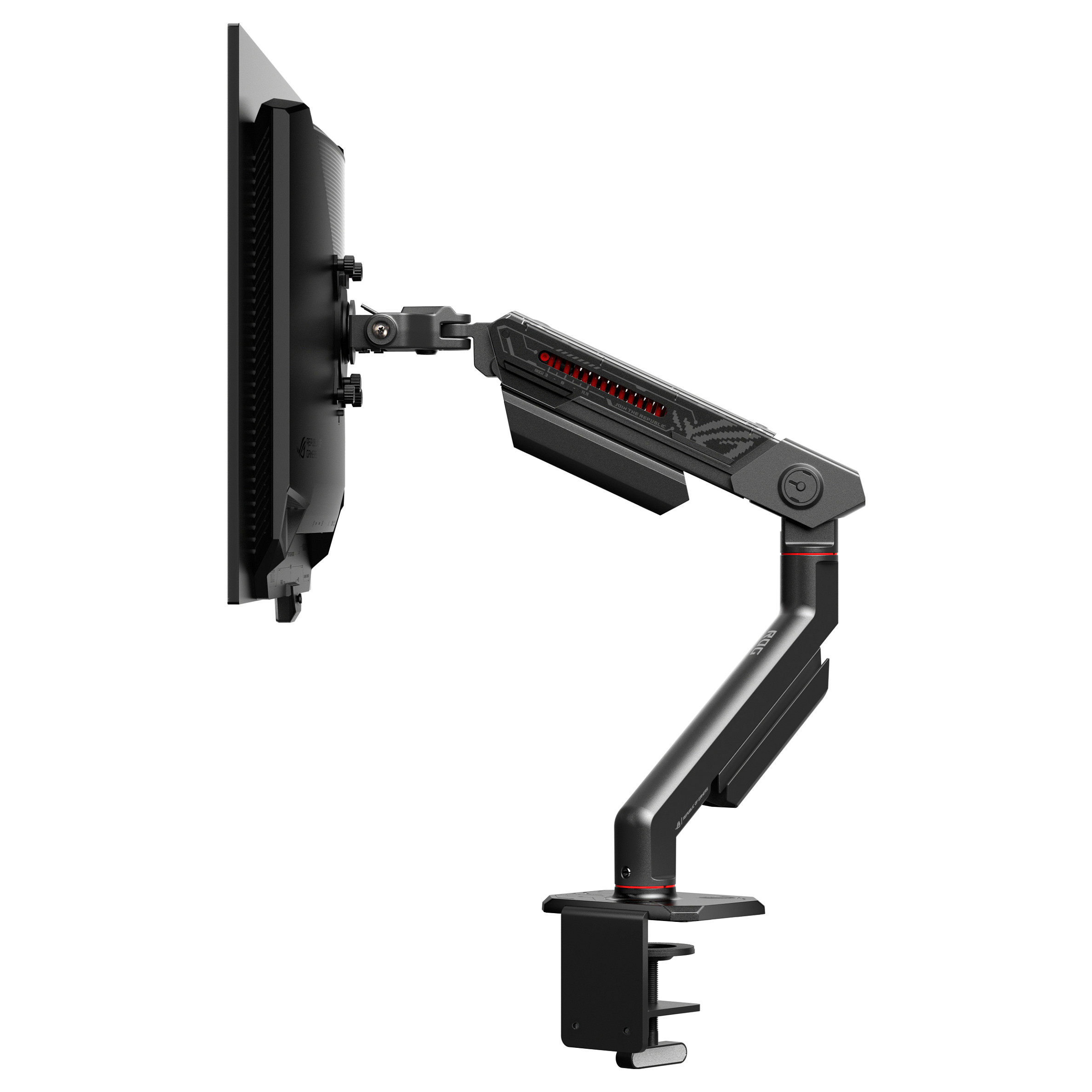 Verbessere dein Spielerlebnis mit dem ROG Ergo Monitor Arm. Das kompakte Design der Halterung maximiert den Platz auf dem Schreibtisch und bietet perfekte Blickwinkel mit umfangreichen Höhen-, Neigungs- und Schwenkeinstellungen für ultimativen ergonomischen Komfort.