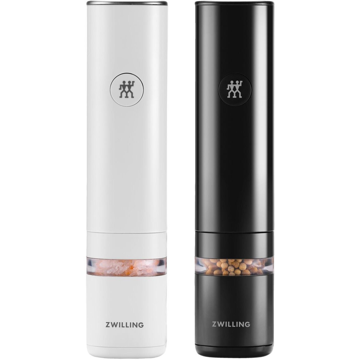 Jetzt ist Mahl-Zeit – und das gleich doppelt: mit den zwei ZWILLING ENFINIGY Gewürzmühlen in Schwarz und Weiß mahlst du jetzt mühelos Salz und Pfeffer für deine frischen Gerichte. Ermöglicht wird das durch das hochwertige Keramikmahlwerk, das in der Salz- und Pfeffermühle steckt. Das ist nicht nur besonders hart und verschleißfrei, es setzt beim Mahlen auch die Aromen der Gewürze frei und sorgt so für besonderen Genuss. Den Mahlgrad der elektrischen Salz- und Pfeffermühle bestimmst du dabei übrigens selbst: von grob bis fein, ganz nach deinem Geschmack.