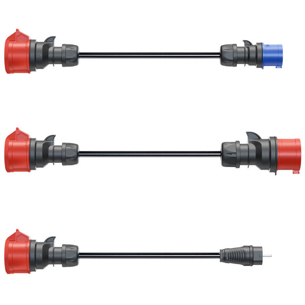 Adapterset mit allen drei Adapterkabeln für den go-e Charger Gemini flex 11 kW mit 16 A CEE rot Stecker (dreiphasig - Drehstrom).