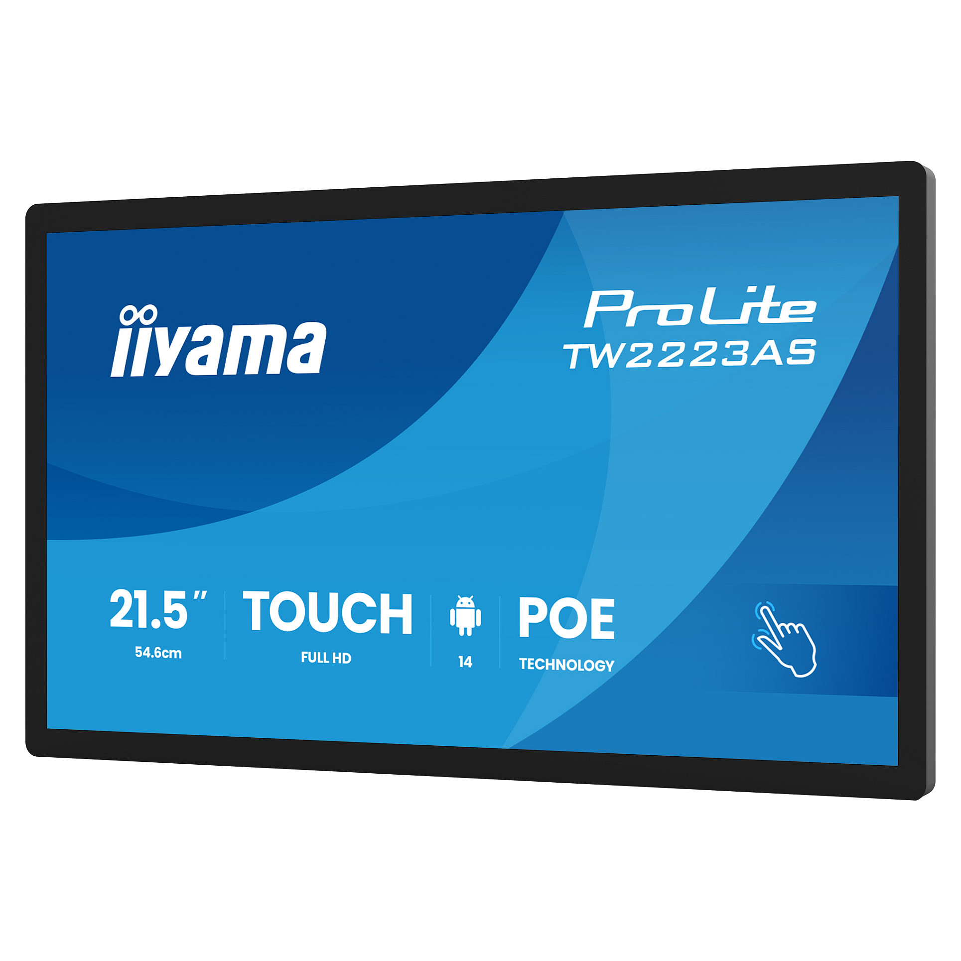 Der interaktive Touchpanel-PC ProLite TW2223AS-B3P ist die perfekte Wahl für Umgebungen mit hohem Nutzungsaufkommen. Das IPS-Panel, das in einen schlanken und eleganten Rahmen integriert ist, liefert sowohl eine hervorragende Farbleistung mit weiten Betrachtungswinkeln als auch spürbar schärfere Bilder. Die In-Cell 10Pkt. PCAP-Touch-Technologie sorgt für ein flüssiges und natürliches Touch-Erlebnis. Dieser Monitor kann im Quer- und Hochformat sowie mit dem Display nach oben im 24/7-Betrieb eingesetzt werden. Dank des vorinstallierten Android 14-Betriebssystems ist es möglich, den Monitor einfach anzupassen, indem Apps direkt darauf installiert werden. In Kombination mit dem 32-GB-Speicher, der Wi-Fi-Verbindung, den LAN- (RJ45) und HDMI-Anschlüssen eignet sich der Monitor besonders für POS-Systeme oder Informationspunkte in Einzelhandelsgeschäften, um Kunden über Ihre Produkte zu informieren, sowie für nahezu grenzenlose Smart-Home-Anwendungen. Dank Power-over-Ethernet (PoE) werden sowohl Strom als auch Daten über ein einziges Kabel übertragen, was die Installation vereinfacht und zusätzliche Kabel überflüssig macht. Darüber hinaus lässt er sich mühelos in iiSignage² , das Content Management System (CMS) von iiyama, integrieren und gibt Ihnen die volle Kontrolle über Ihre Botschaften und Werbung.