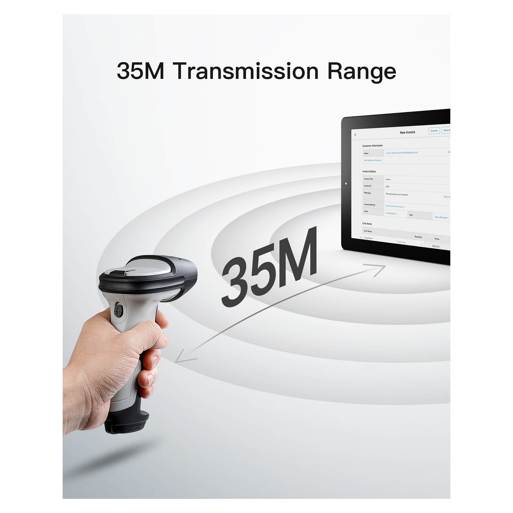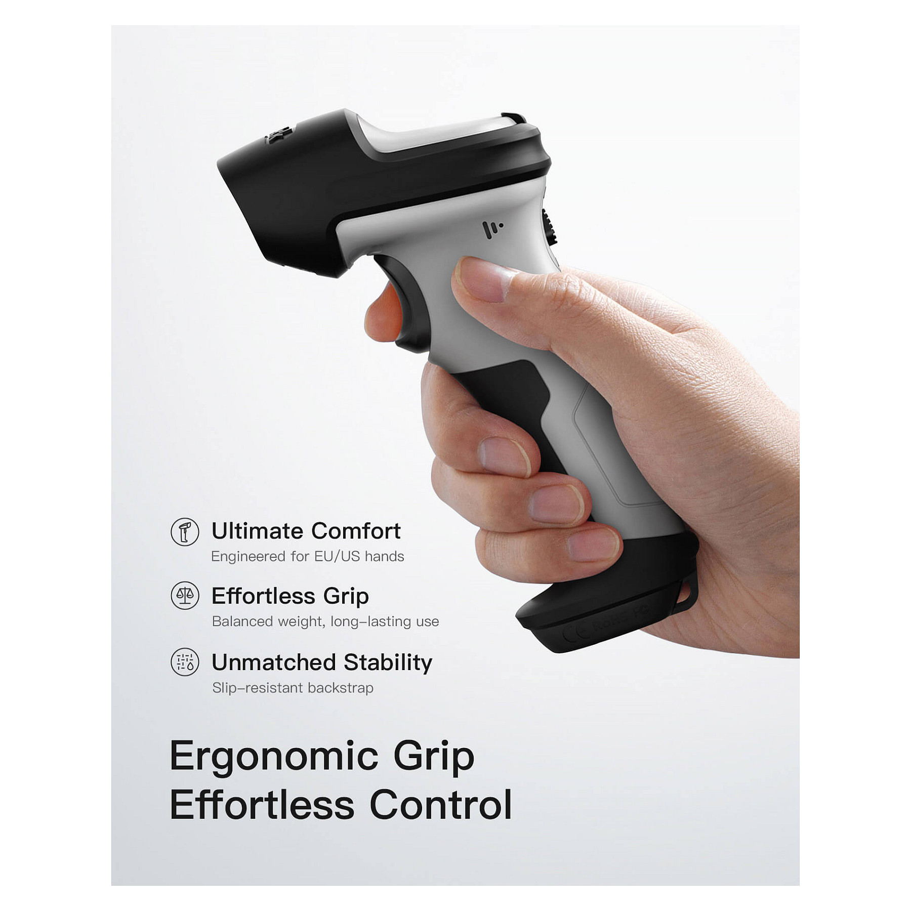 Inateck BCST-70. Typ: Tragbares Barcodelesegerät, Scanner-Typ: 1D, Sensor-Typ: Laser. Übertragungstechnik: Kabellos, Standard-Schnittstellen: Bluetooth, USB. Produktfarbe: Schwarz, Grau, Gehäusematerial: Polycarbonat (PC), Thermoplastisches Urethan (TPU), Schutzfunktion: Stoßfest. Energiequelle: Akku, Akku-/Batteriekapazität: 2600 mAh. Gewicht: 200 g, Breite: 92 mm, Tiefe: 69 mm