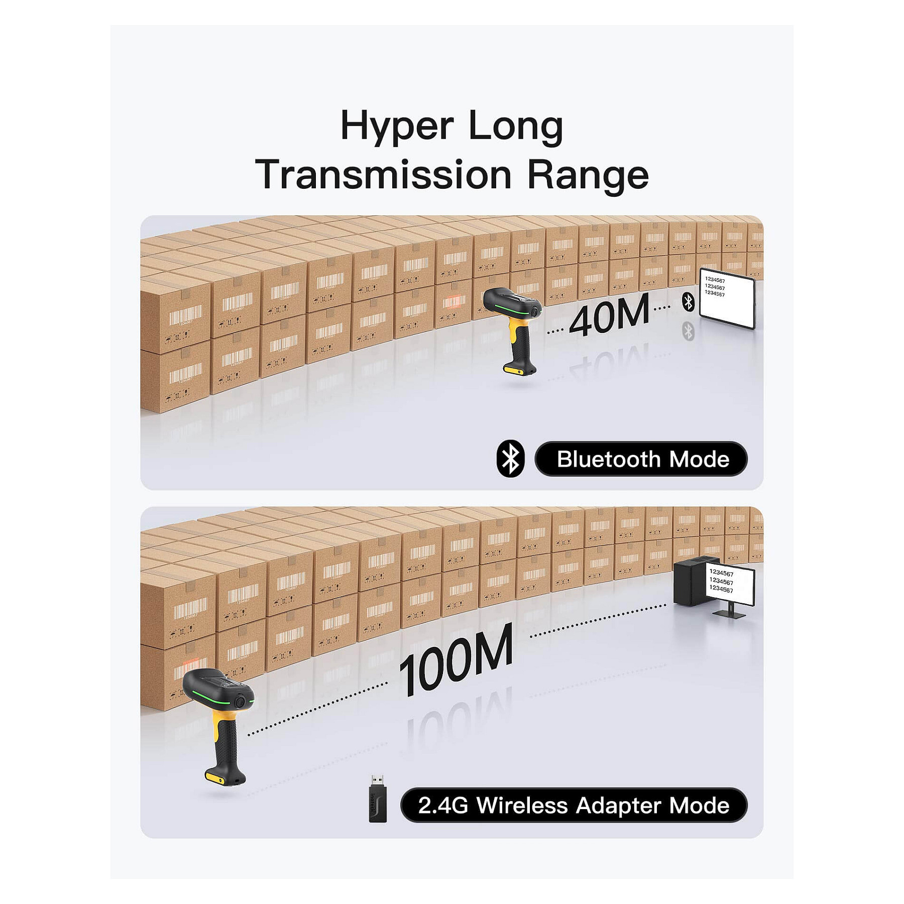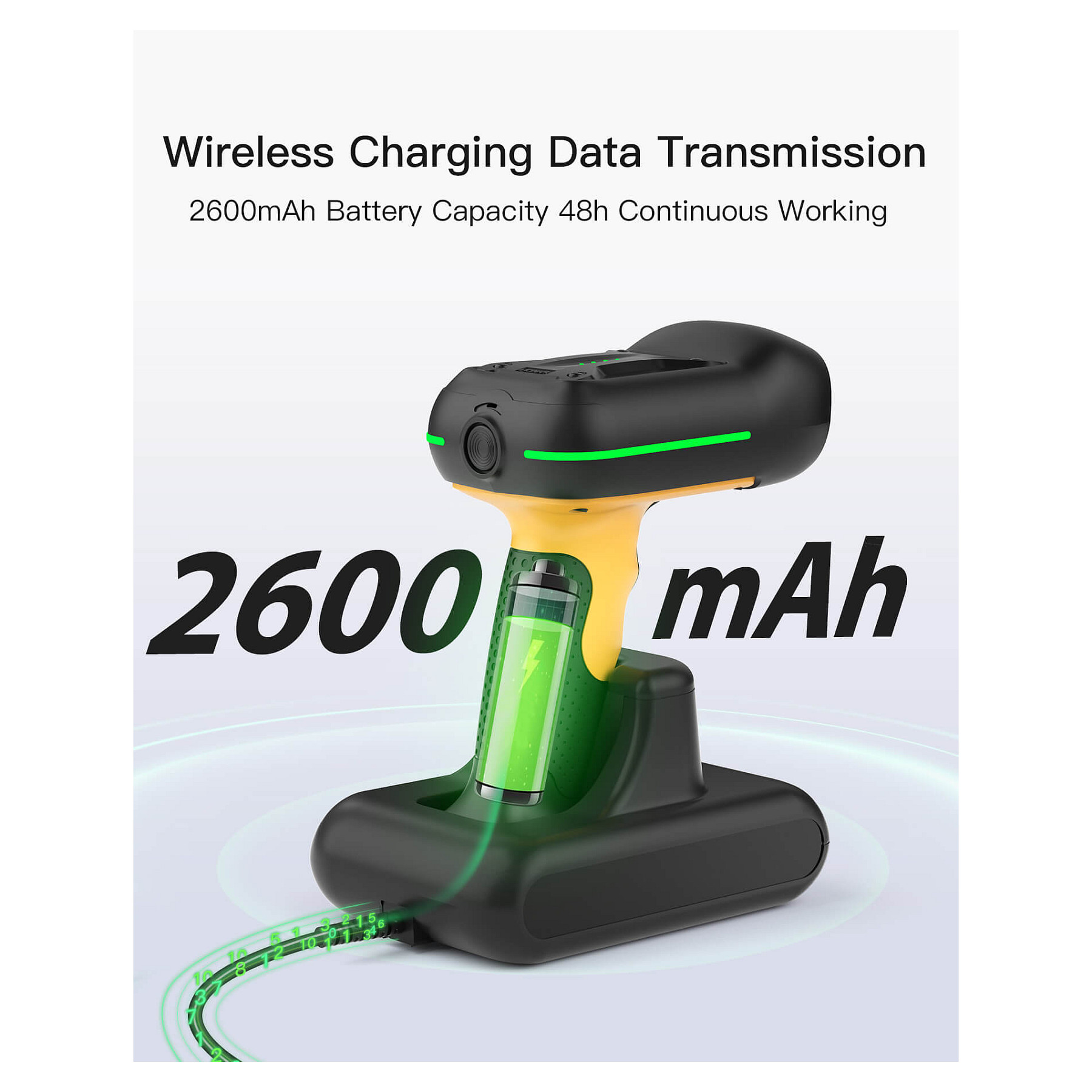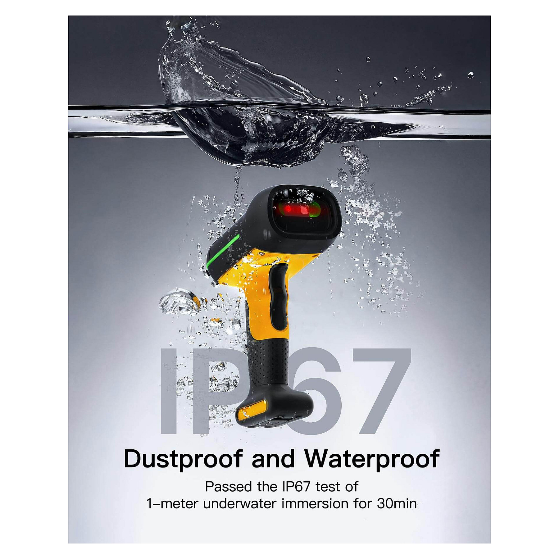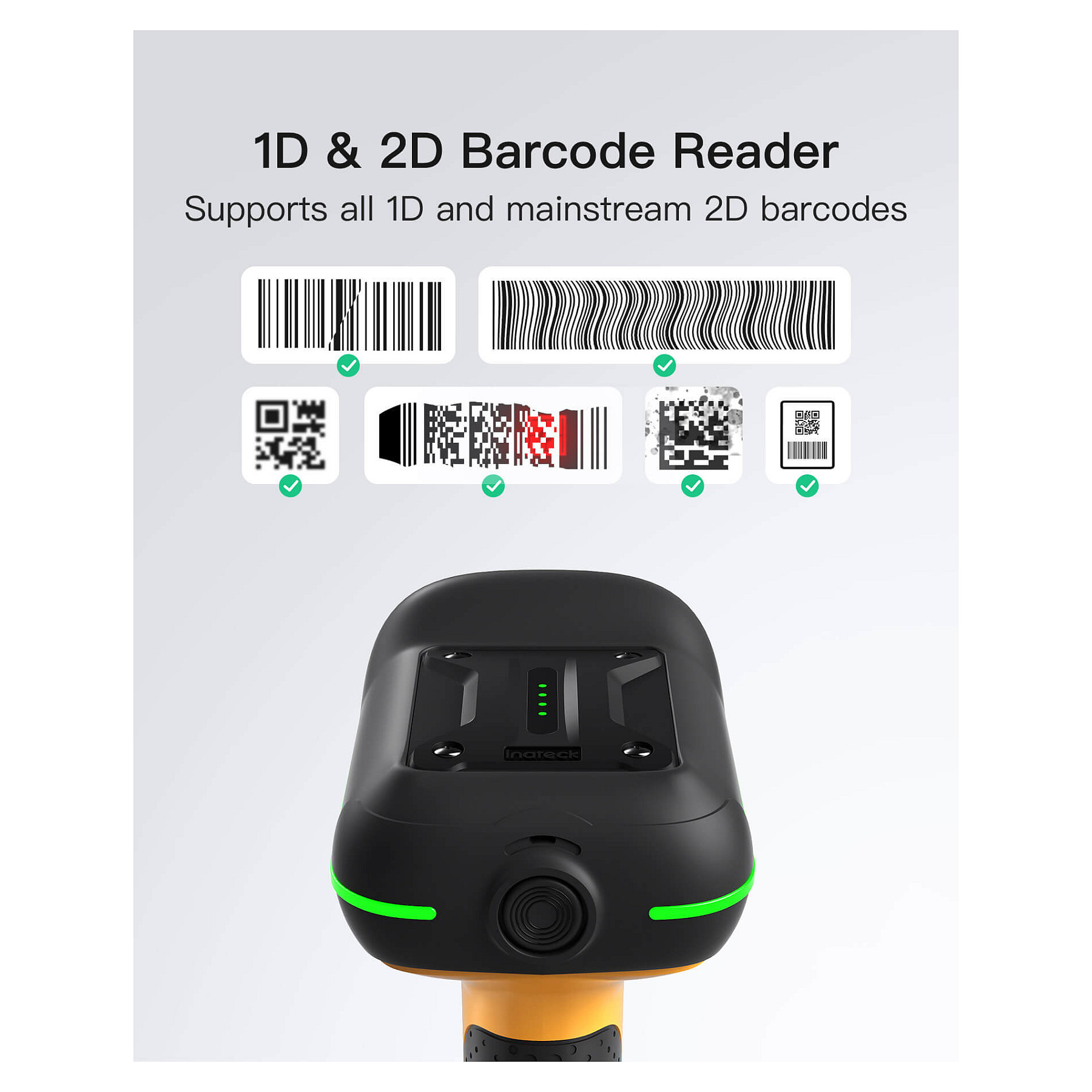 Inateck BCST-75S. Typ: Tragbares Barcodelesegerät, Scanner-Typ: 1D/2D, Sensor-Typ: CMOS. Übertragungstechnik: Verkabelt & Kabellos, Standard-Schnittstellen: USB. Produktfarbe: Schwarz, Gelb, Gehäusematerial: Acrylnitril-Butadien-Styrol (ABS), Polycarbonat (PC), Thermoplastisches Urethan (TPU), Internationale Schutzart (IP-Code): IP67. Energiequelle: Akku, USB, Akku-/Batteriekapazität: 2600 mAh, Eingangsspannung: 5 V. Gewicht: 614 g, Breite: 150,3 mm, Tiefe: 100,4 mm