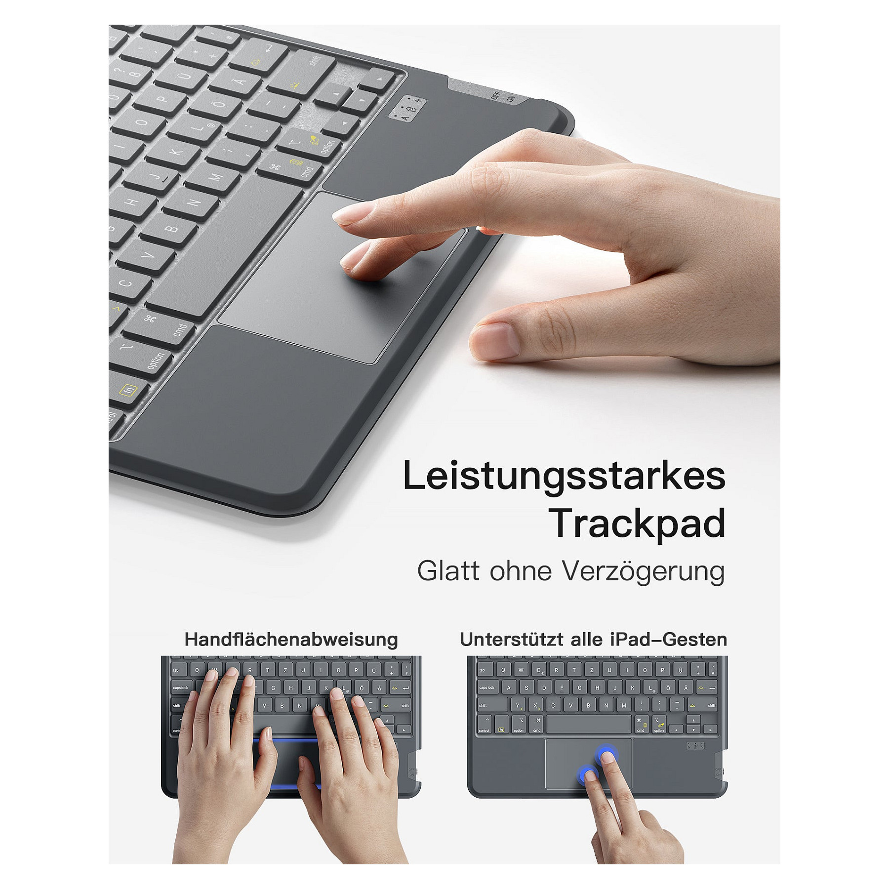 Kompatibilität: Die hülle mit tastatur ist speziell für iPad 11 Gen. (A16 2025) 11 Inch, iPad 10 Gen.(2022). Sie ist nicht kompatibel mit anderen Modellen. Bitte überprüfen Sie die Modellnummer beginnend mit „A“ auf der Rückseite Ihres iPad vor dem Kauf.