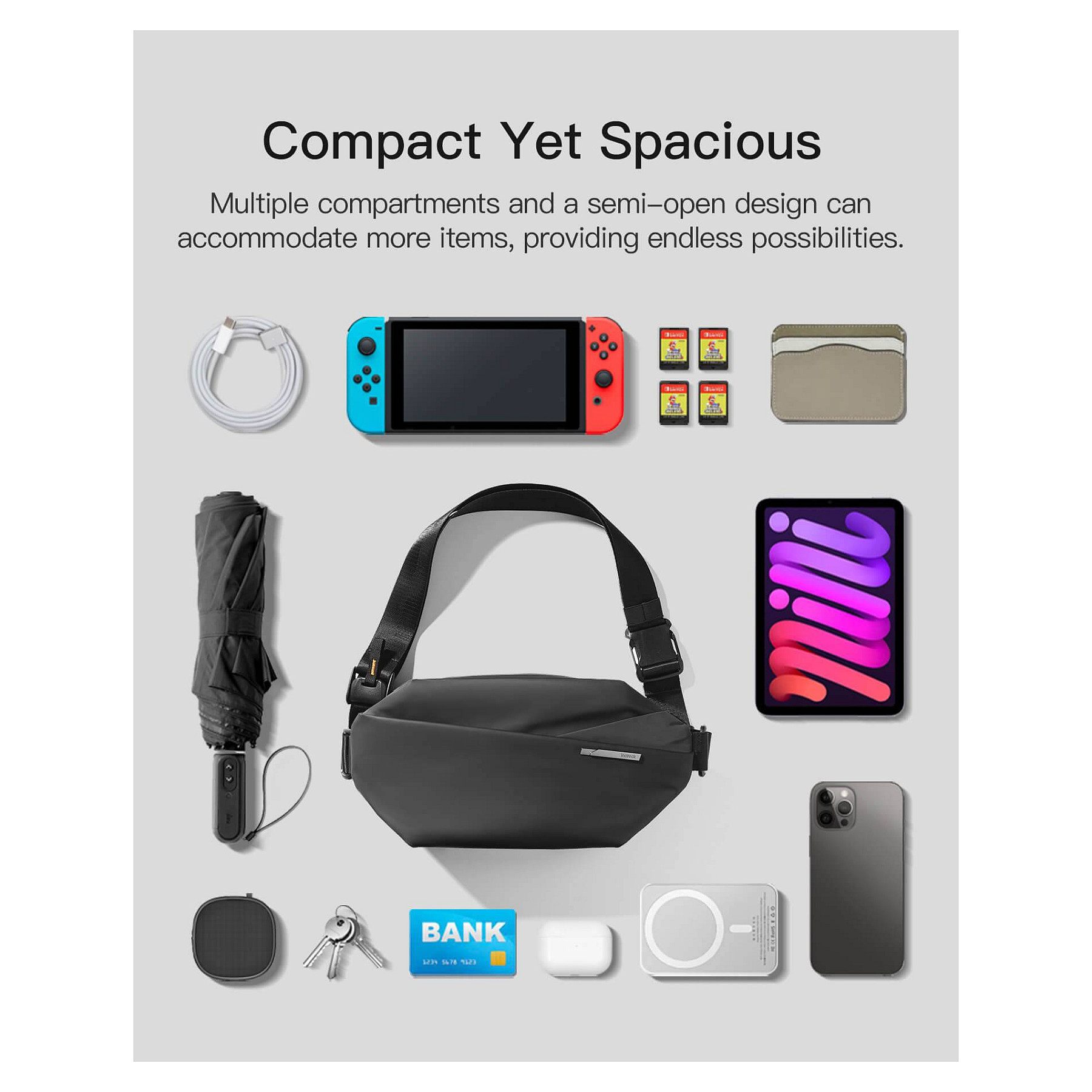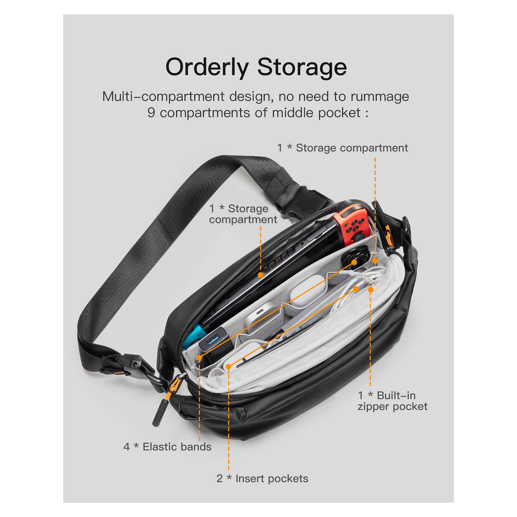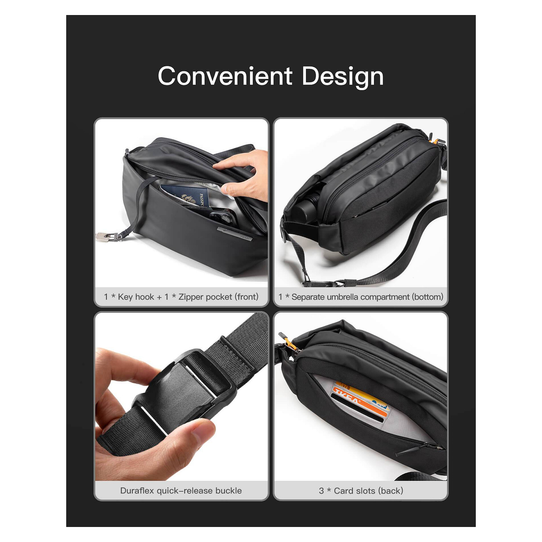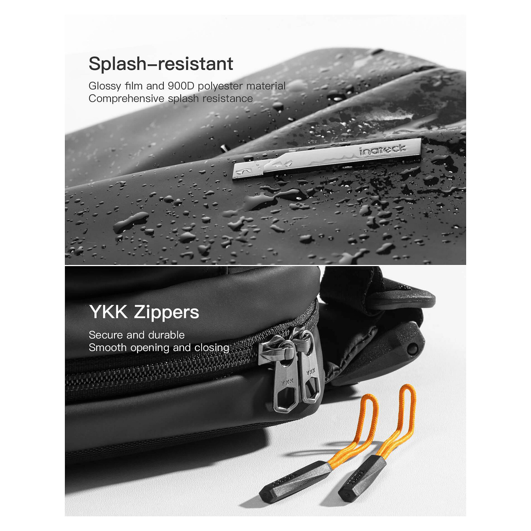 Inateck LB03014. Empfohlenes Geschlecht: Unisex, Typ Handtasche/Umhängetasche: Schultertasche, Verschlussart: Reißverschluss. Produkthauptfarbe: Schwarz, Färbung: Einfarbig, Riemenfarbe: Schwarz. Material: Polyester, Lineare Massendichte: 900 D. Volumen (l): 4 l, Breite: 340 mm, Tiefe: 80 mm