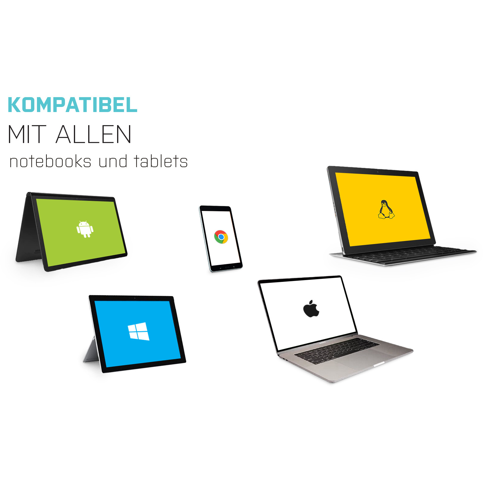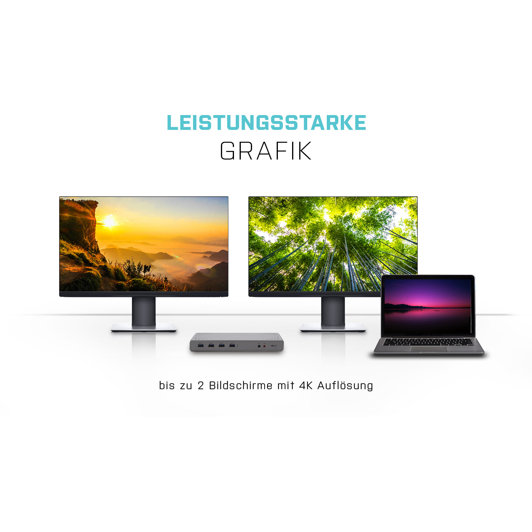 Kompatibel mit Ihrem USB-A 3.0, USB-C oder Thunderbolt 3 Notebook, Tablet oder Smartphone jeder Marke und Plattform. Geeignet für Windows und MacOS. Kabel inklusive – einfach Plug & Play. Die Docking Station ist mit einem einzigen Kabel anzuschließen und kann ohne weiteres gleich benutzt werden.