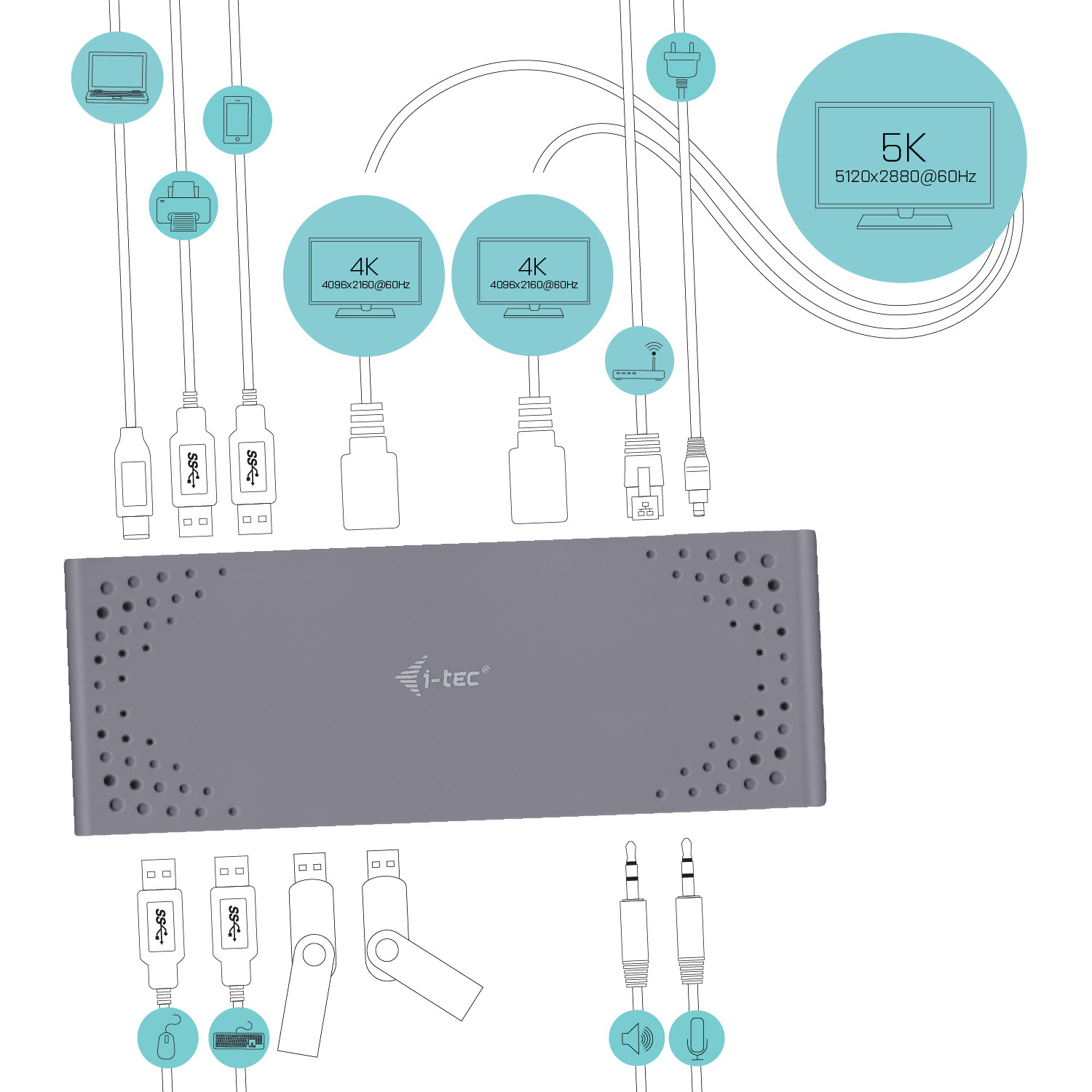 Mit dieser i-tec Universal Docking Station eine hervorragende Grafikauflösung von bis zu 5K / 60Hz zu erreichen, die zurzeit keine andere Docking Station in diesem Preisniveau anbietet. Die Docking Station wird über USB 3.0 Schnittstelle angeschlossen und deswegen wird die Aufladung von Notebooks und Tablet-PCs nicht unterstützt.